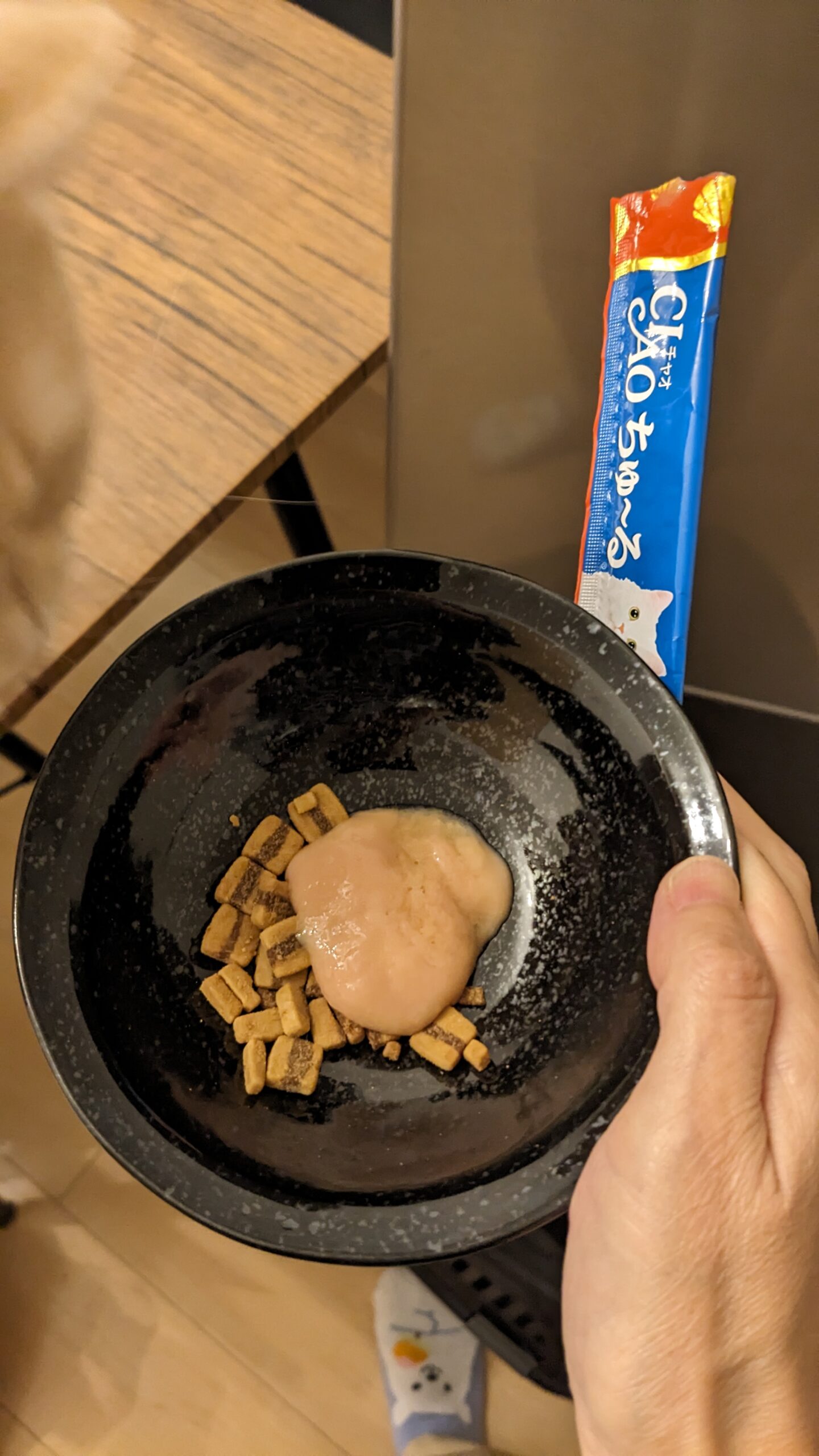 初回訪問の時は離れたところから様子を見ていたゆずくんでしたが、お世話にお伺いさせていただくと足元に来て体を擦りつけてフレンドリーでした(^^)