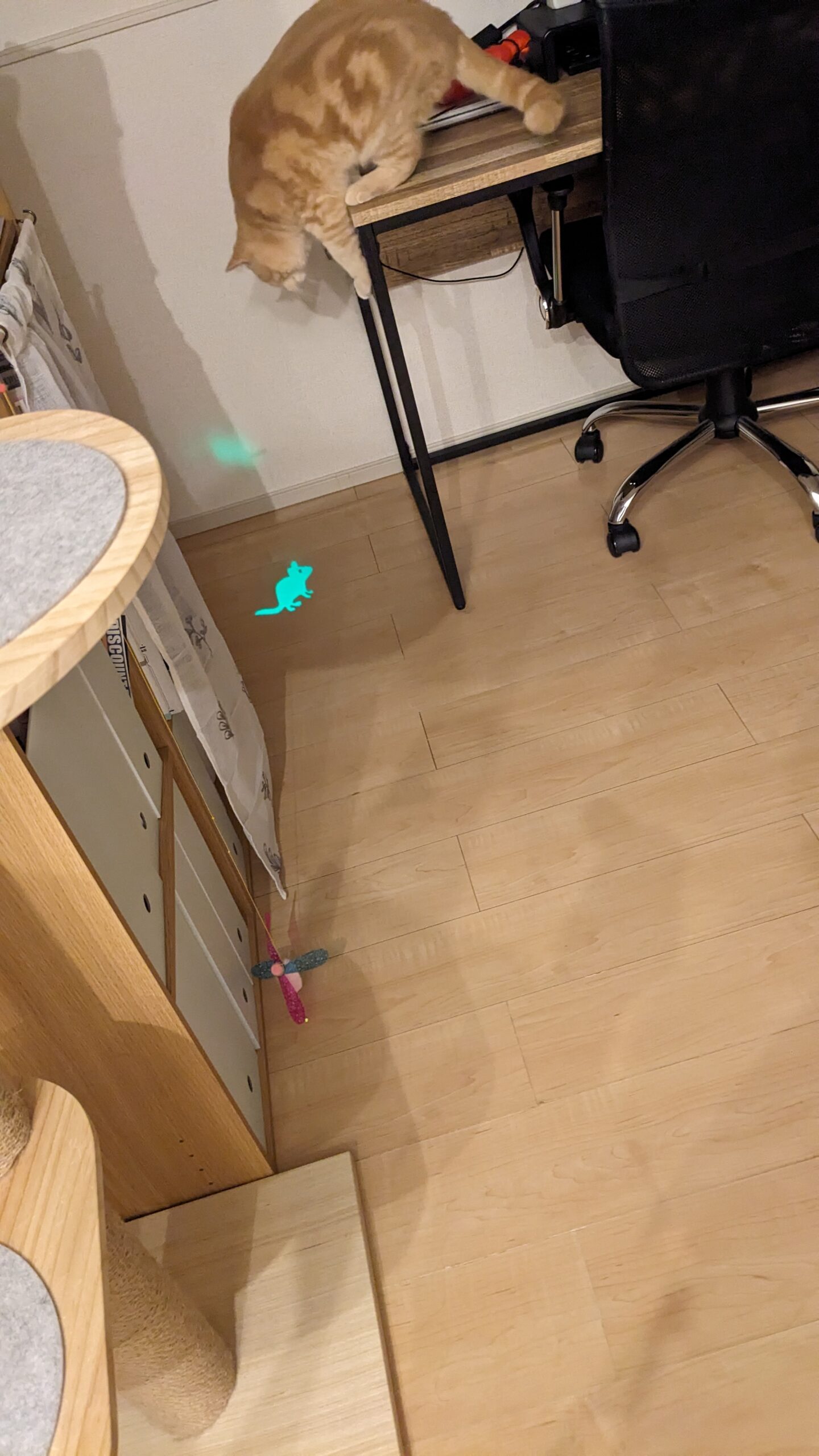 ゆずくんはレーザーポインタを夢中で追いかけていました。