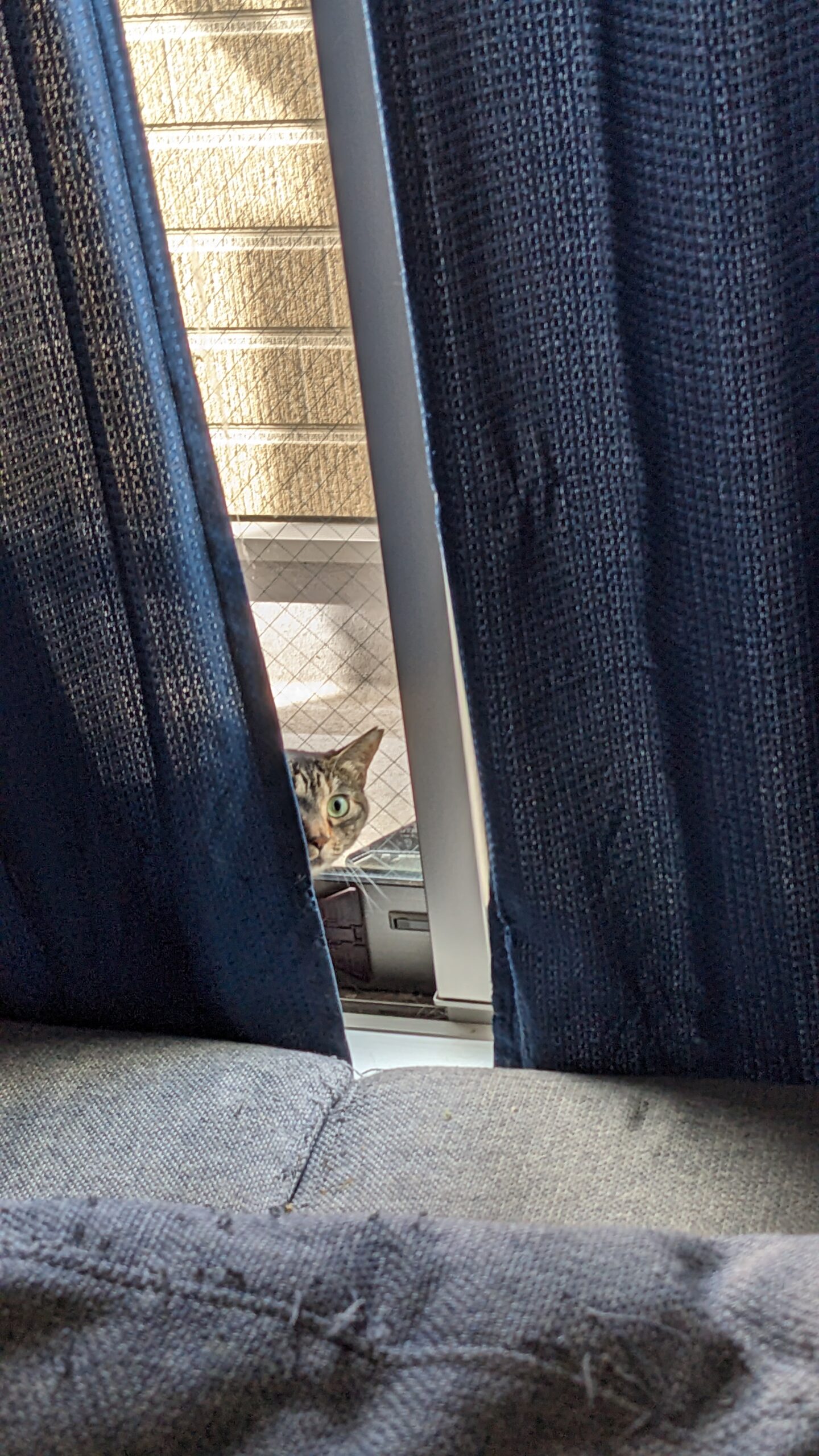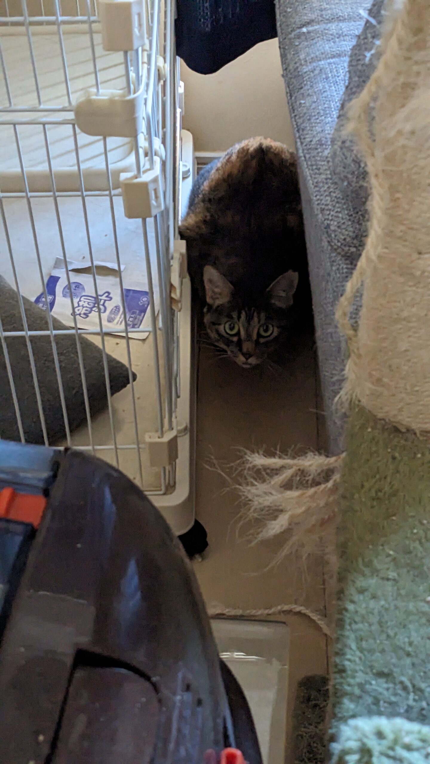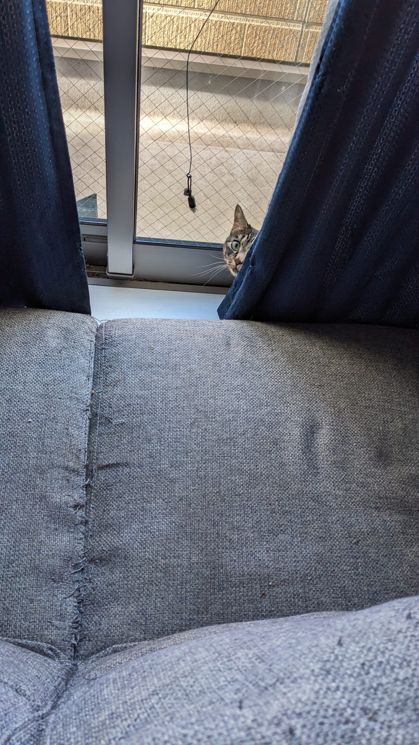 くーちゃんはとても人見知りなのでカーテンやイスの下に隠れてしまうことが多いのですが、時々姿を見せてくれます。