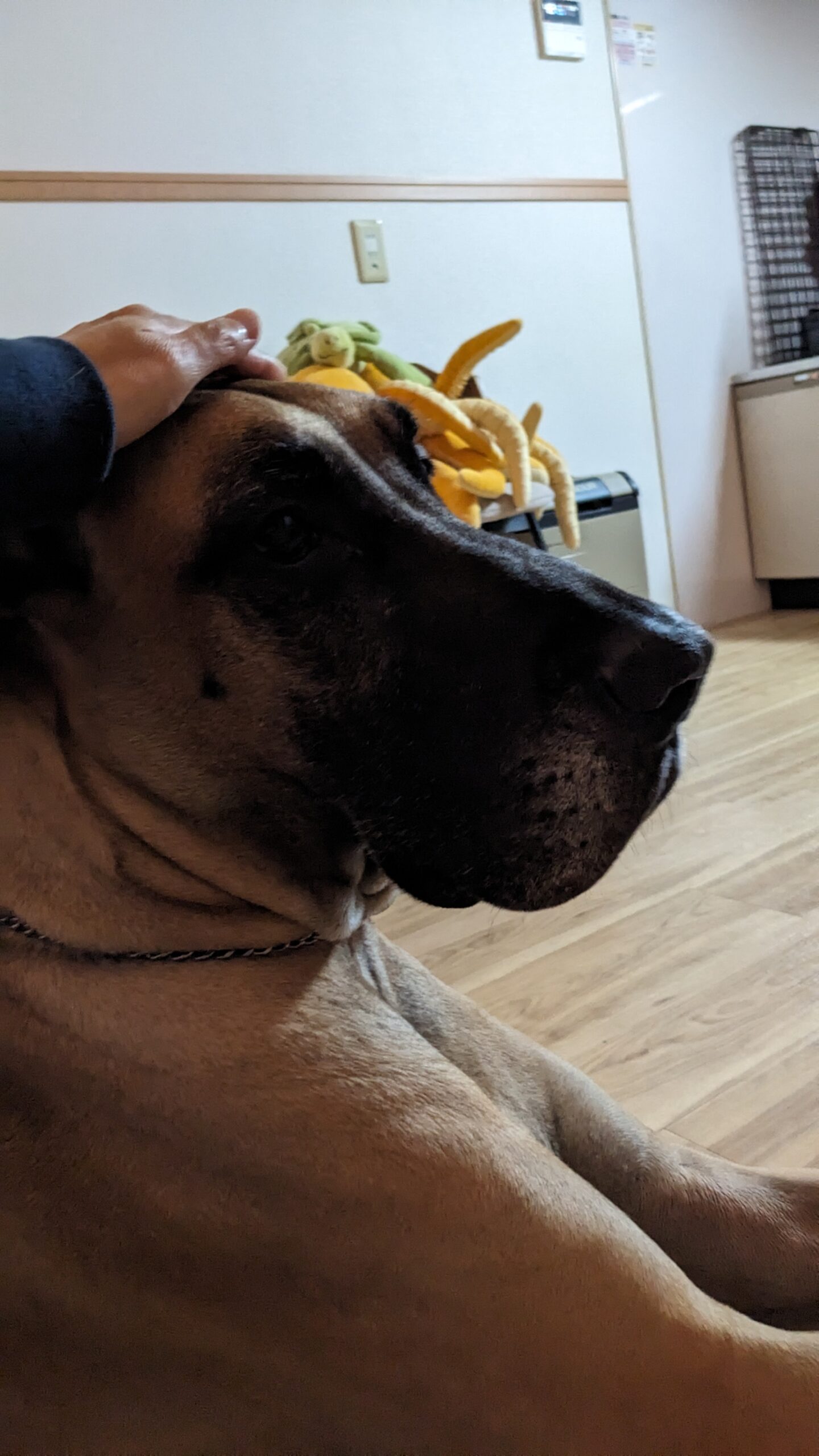 お世話にお伺いさせていただいた日は少し緊張していたデデちゃんでしたが、すぐに初回訪問の時を思い出してくれて匂いを嗅いでいました。