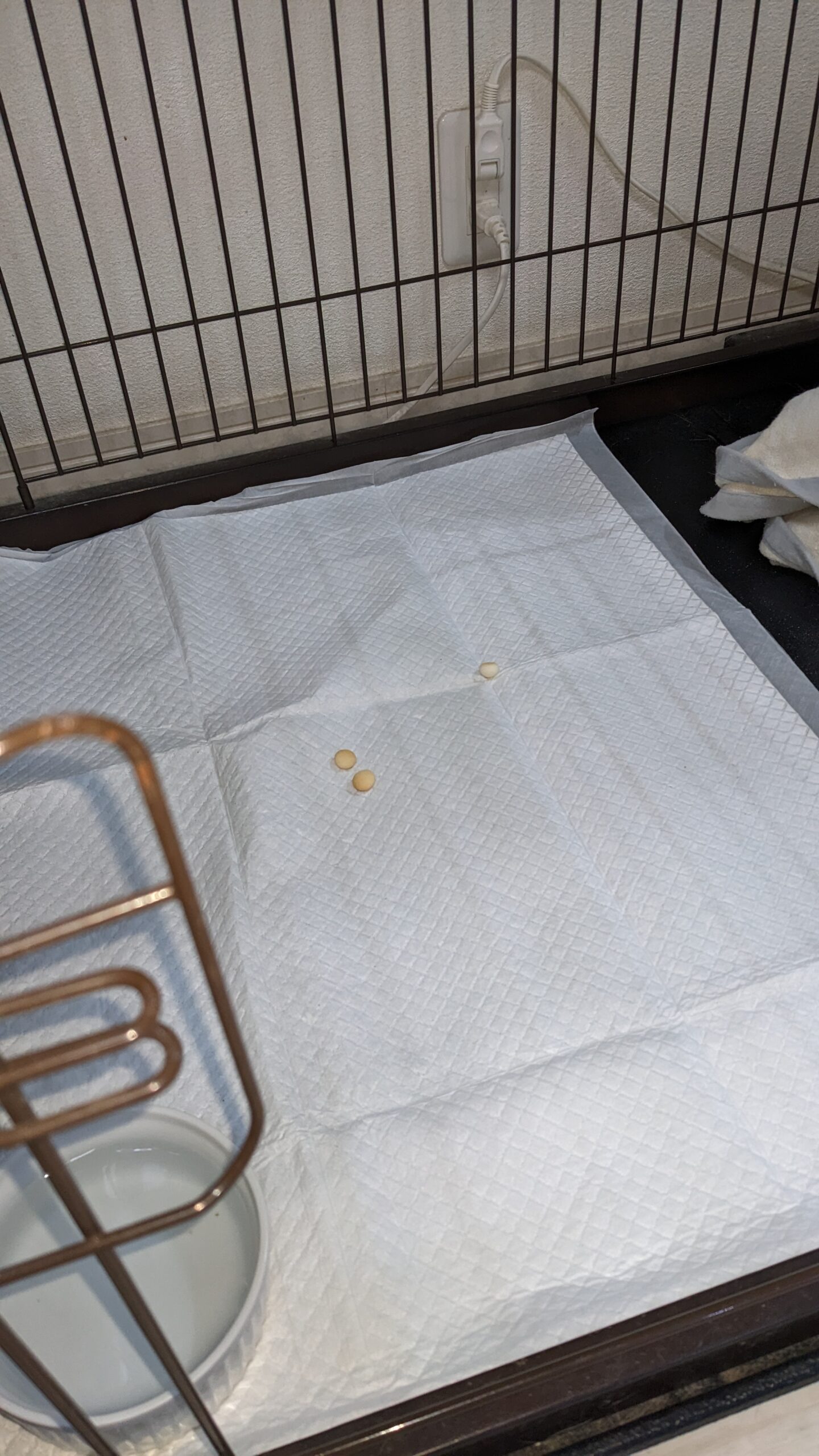 退出前に、おやつをケージに入れると入ってくれました。