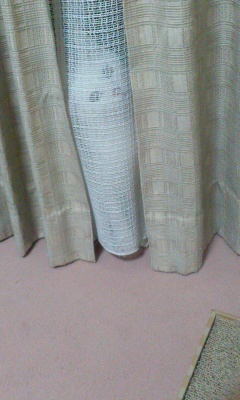 しかし!ごはんの用意やトイレの掃除をしていると、なにやらカーテンから気配が。。。