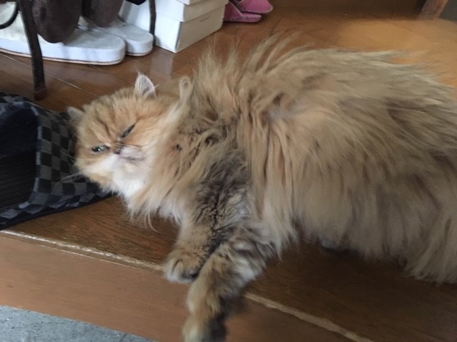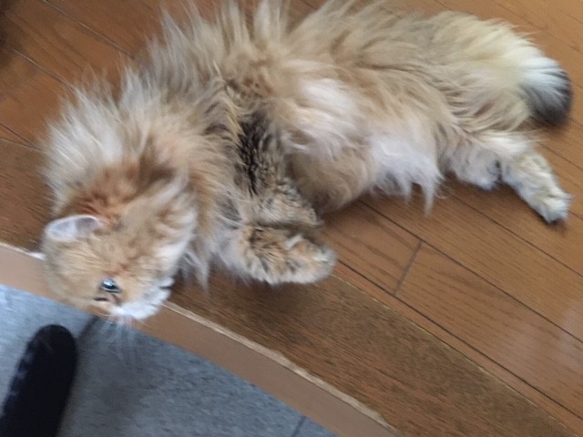 玄関をはいると、さっそくチンチラゴールデンちゃんがごろにゃんとお出迎えしてくれました。