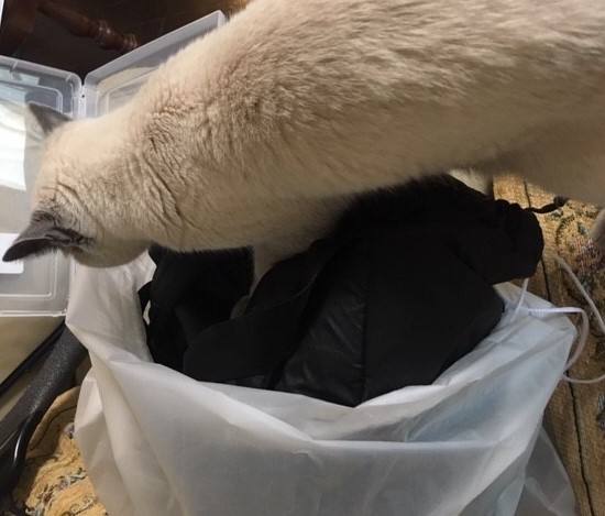 どこのお宅の猫さんもシッターのバックに興味深々です。