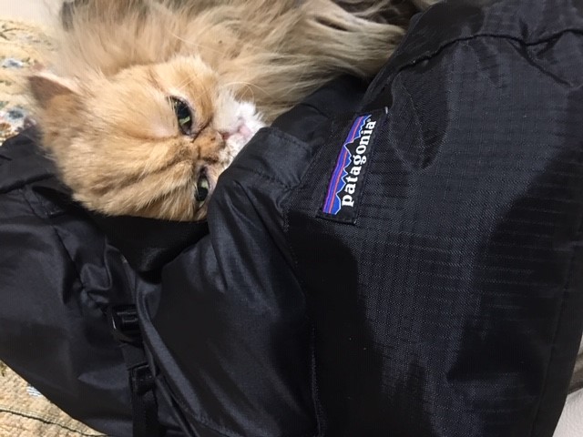 シッターのリュックをひととおりスンスンと検査したあとは枕にしてひとやすみ。