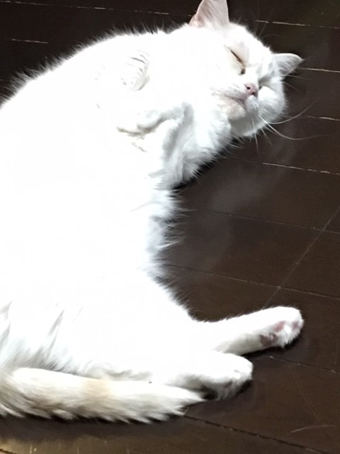 そしてお膝の上が好きなレディです。ここは。。。天国でしょうか?