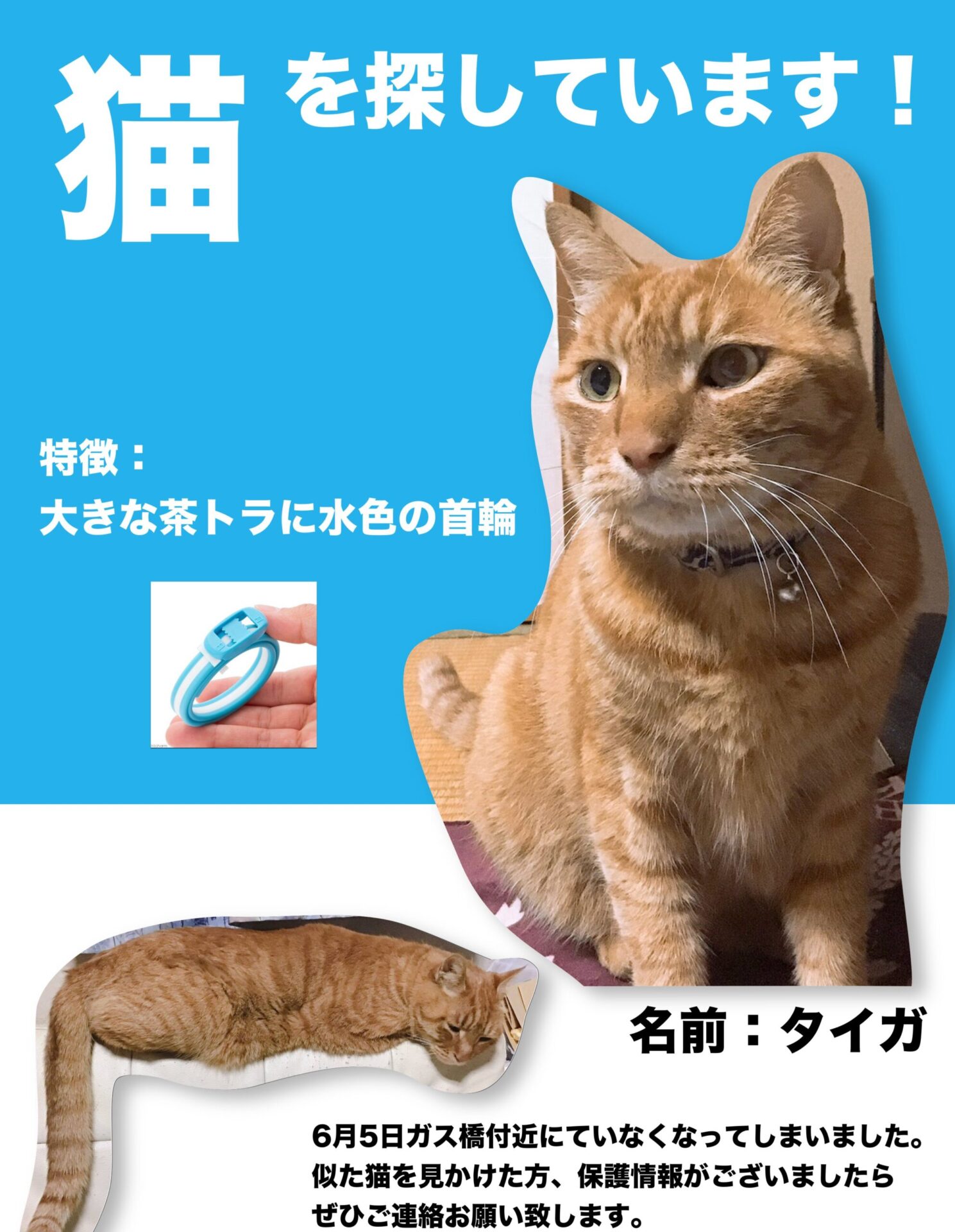 【迷い猫見つかりました】タイガ君を探しています しっぽが長い茶トラです