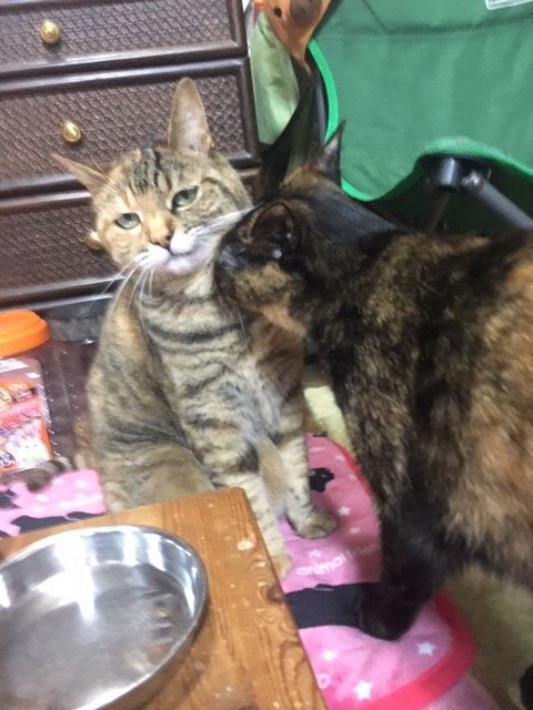 サビ猫姉妹は遊びざかりなので元気いっぱい。