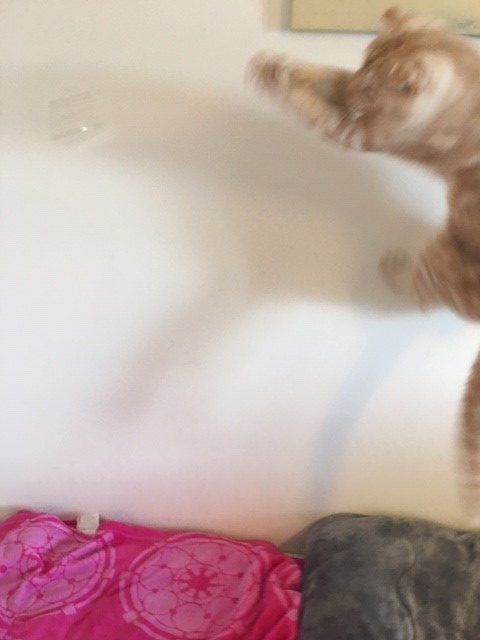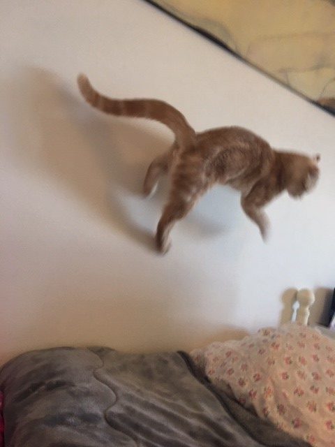 壁を蹴り上げてからオモチャを仕留めるパルクール調のスタイルが得意なパン君。