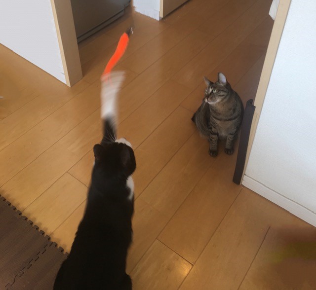 おもちゃに興味津々ですが、無理に割り込んでくることはありません。