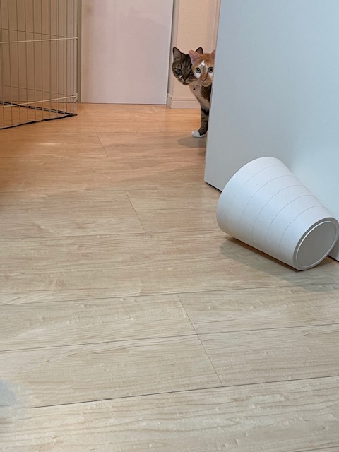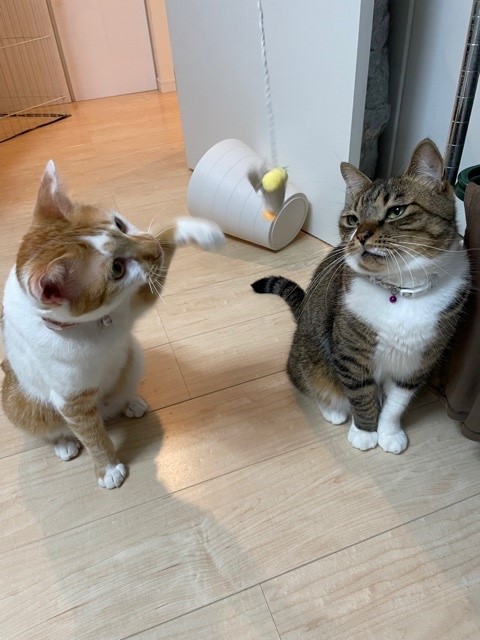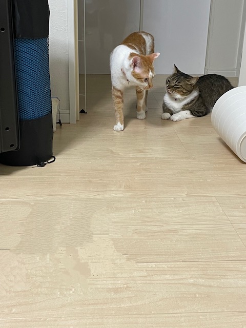 ふたりを刺激しないようにおやつのチュールをにぎりしめ、他のシッティングエリアに移動すると。。。