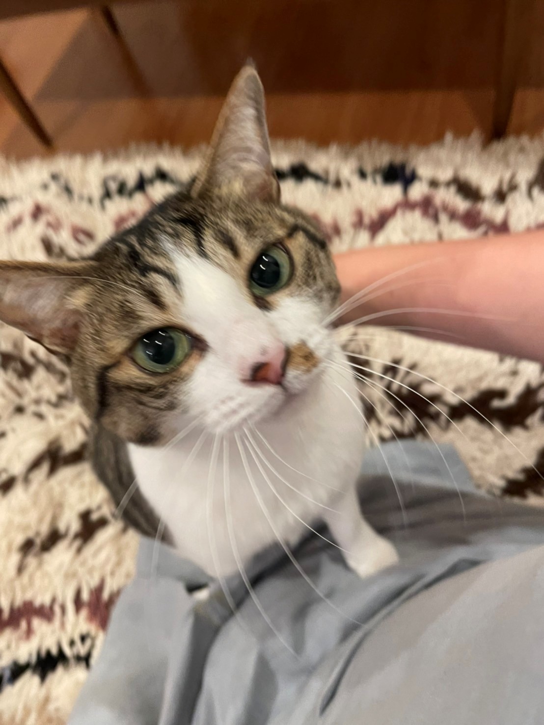 くっきりアイラインの大きな瞳でシッターに熱視線を送ってくれます。