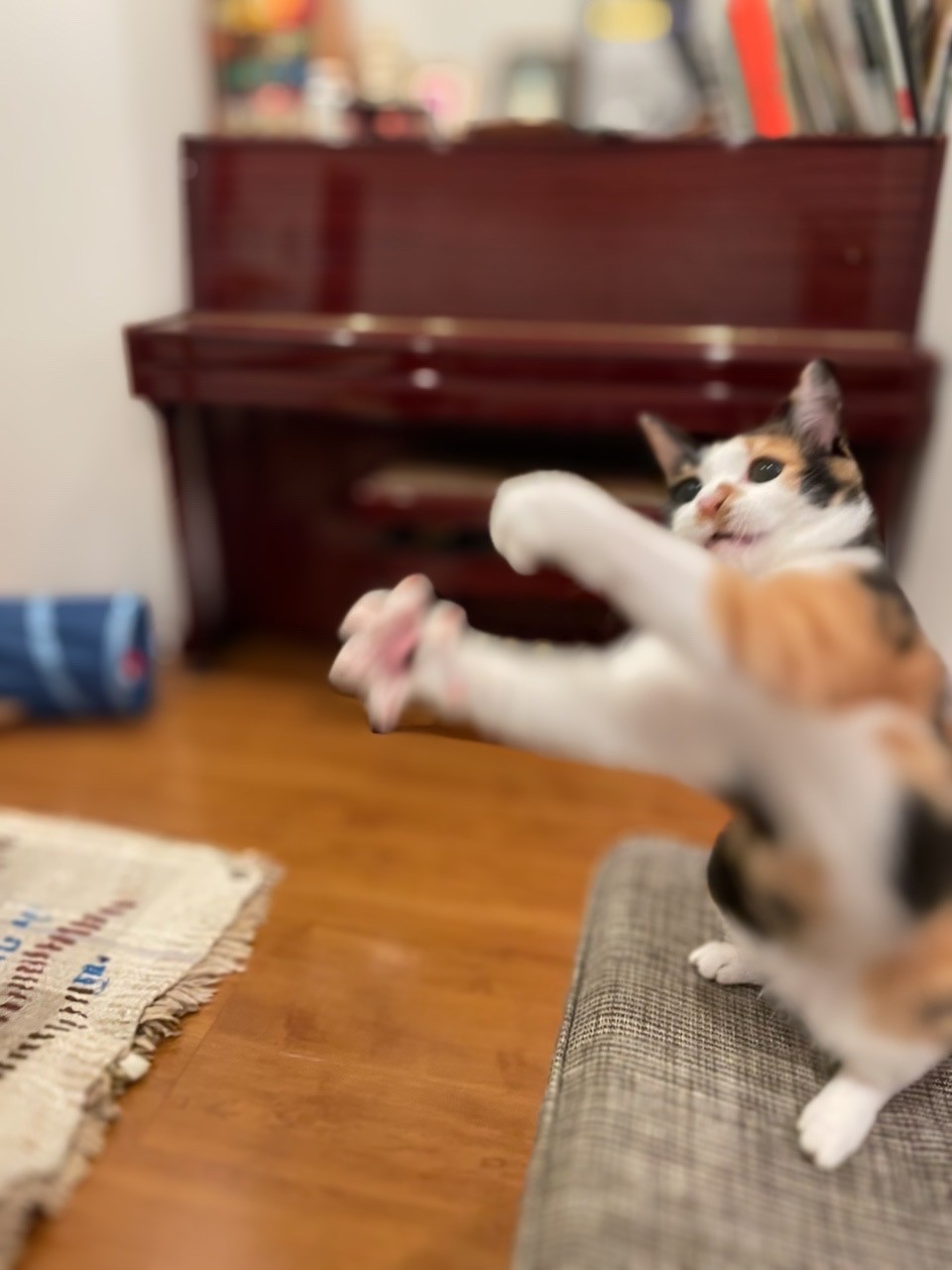 おもちゃを追いかける目がうるうる、キラキラと輝いています