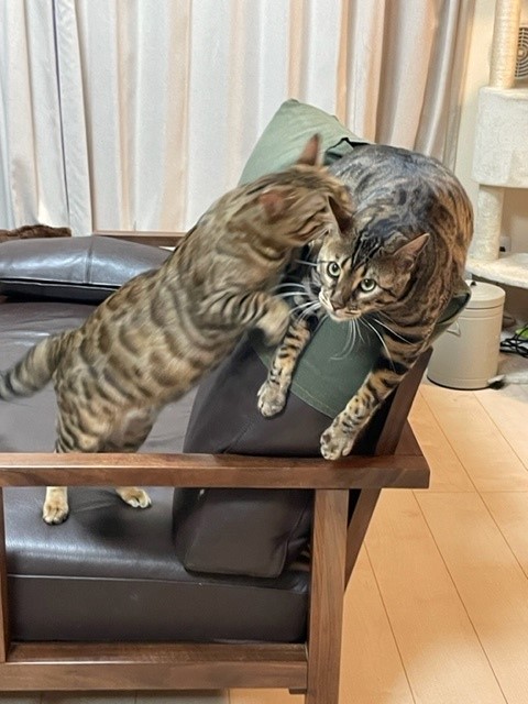 シッティング中、ごはんの時以外はほぼ室内を走り回ってレスリングをしていました。