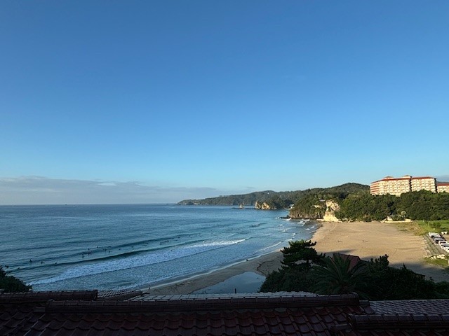 宿からたくさんのサーファーが見えました。万年初心者の私はドキドキです。