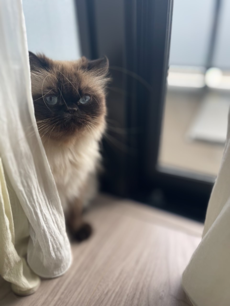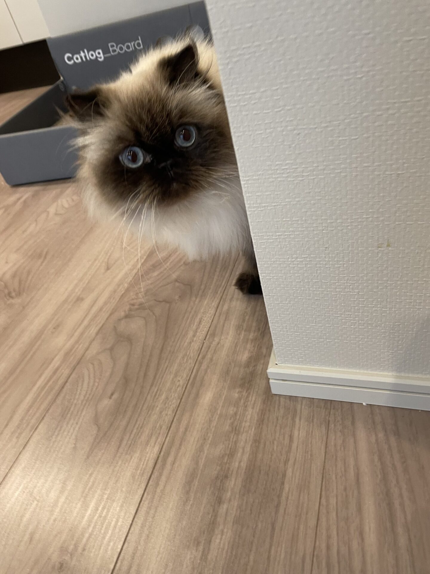 きびちゃんは迎えにはでてきてくれますが、シッティング中は物陰から様子をうかがっています。
