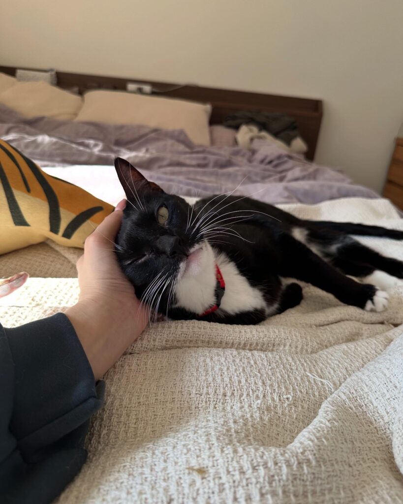 白黒猫のスマートなミカちゃんのお世話|渋谷区、新宿区で猫のお世話