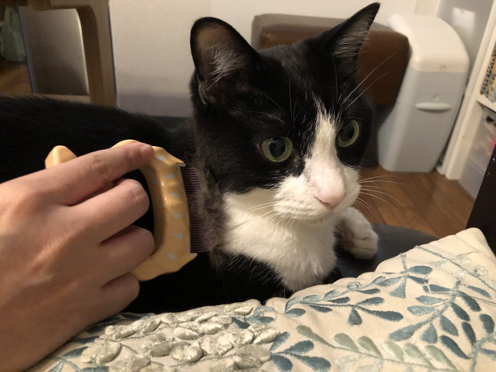 以前は、頭を撫でられるのが嫌い、ブラッシングも嫌い、掃除機のルンバに乗るのが好き、だったのに、現在は、あたま撫でてください、ブラッシングしてくださ〜い、と毎日ご要望があります。また、もうルンバには乗りません。ホントに変わるものです(=^ェ^=)