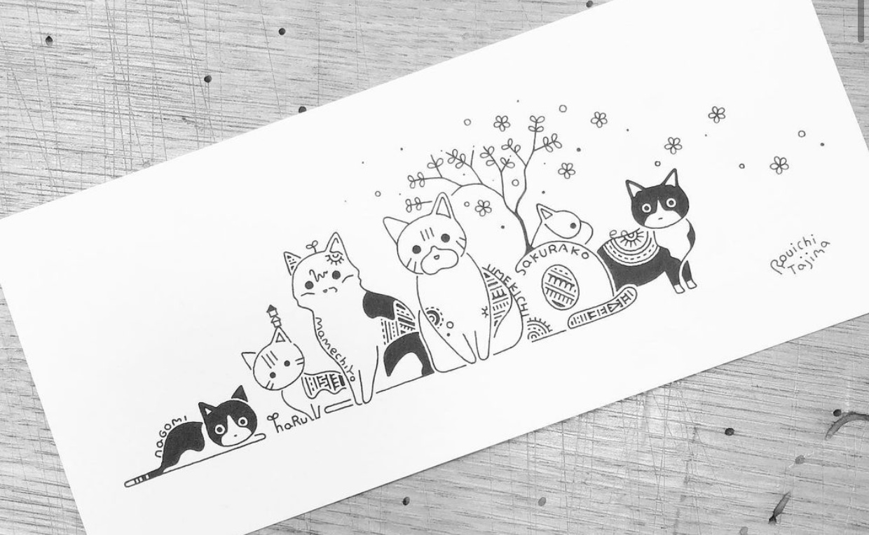 先日、京都の東急ハンズでイベントされていたアーティスト「かめいち堂」の田島亮一さんに、我が家の猫たちをイラストにしていただきました♡