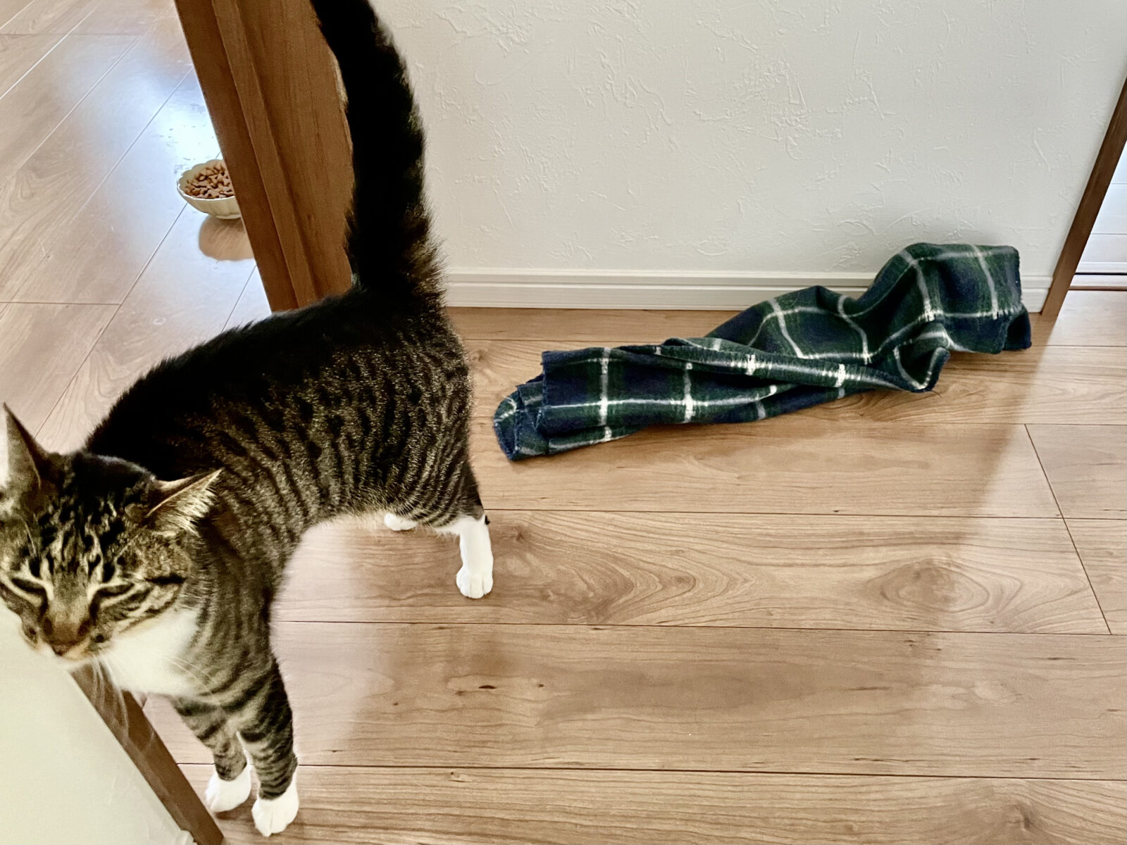 2回目のお世話ではお姿みえず…お昼寝中かな?と思っていたら、2階からコトっと音がしたので階段をのぞきますと、ピョコッと可愛いお顔が!すぐさま階段を駆け降りてきてくれました。スリスリ、アタック、さらにゴロゴロまで!ありがとうございます。