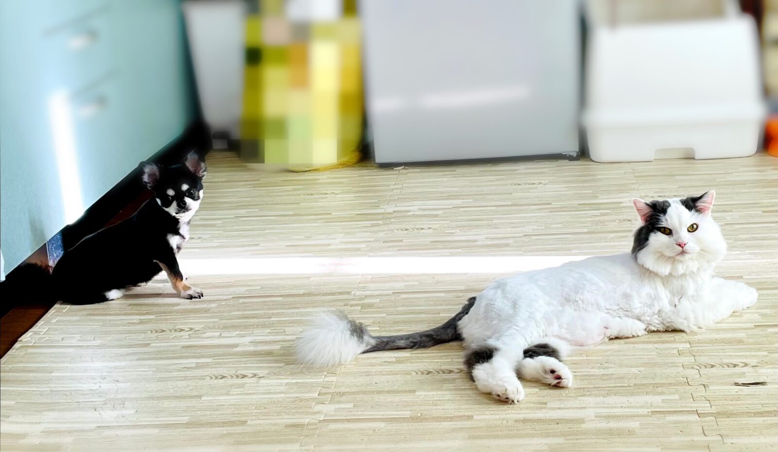 暑さ対策でサマーカット!ふっわふわのしっぽは、チワワちゃんとお揃いです。