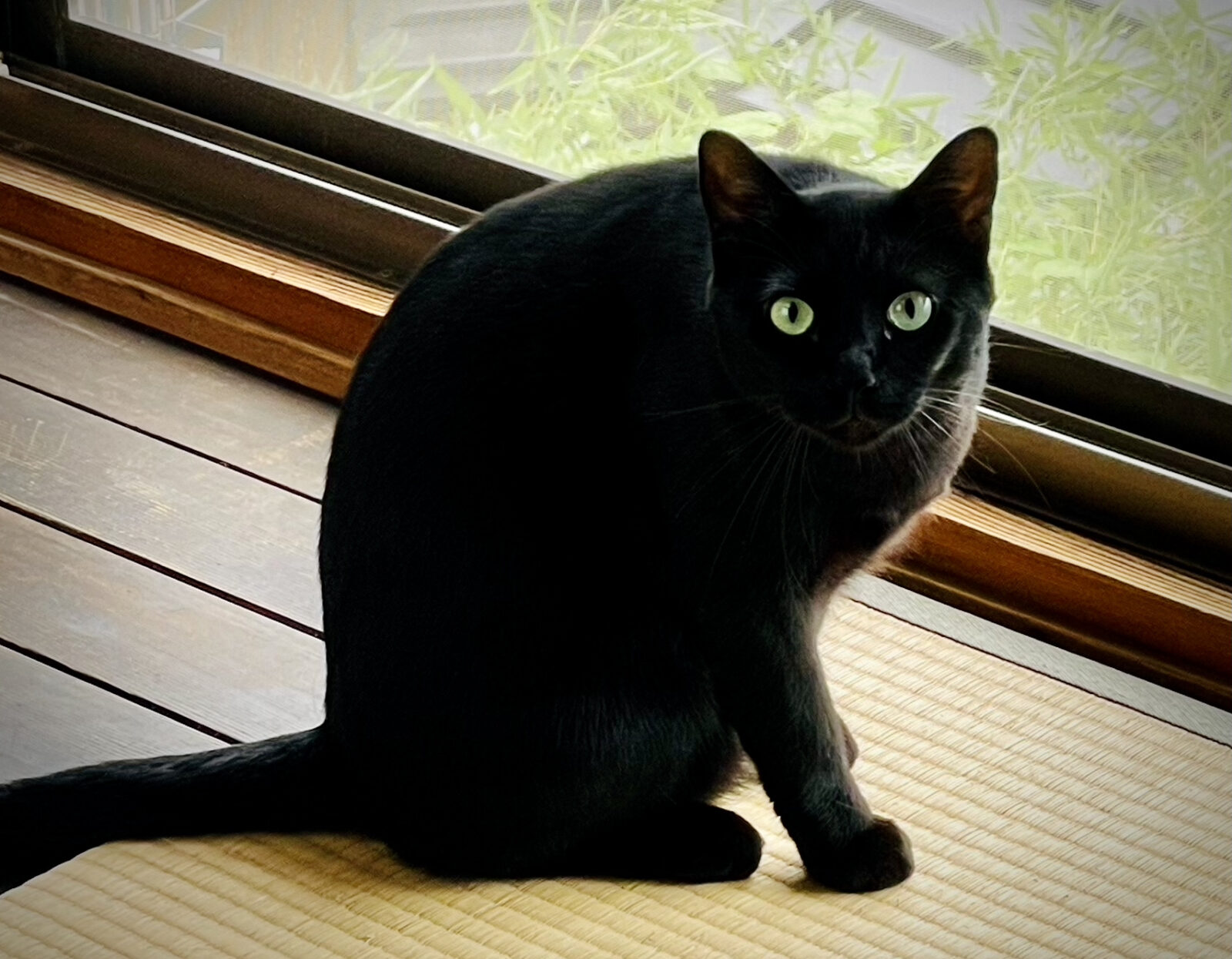 美しい黒猫くんは、ゆったり穏やかにお過ごし。シッターはできる限りお邪魔にならないよう、そーっと移動しています。パッチリお目目が可愛いのです。