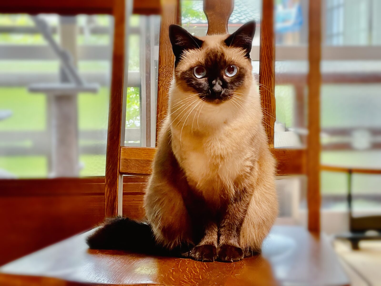 おしゃれなシャム猫ちゃん♡いつも玄関でお迎えくださって、お世話の間もずっとついてきてくれます。ブルーの瞳が印象的です。