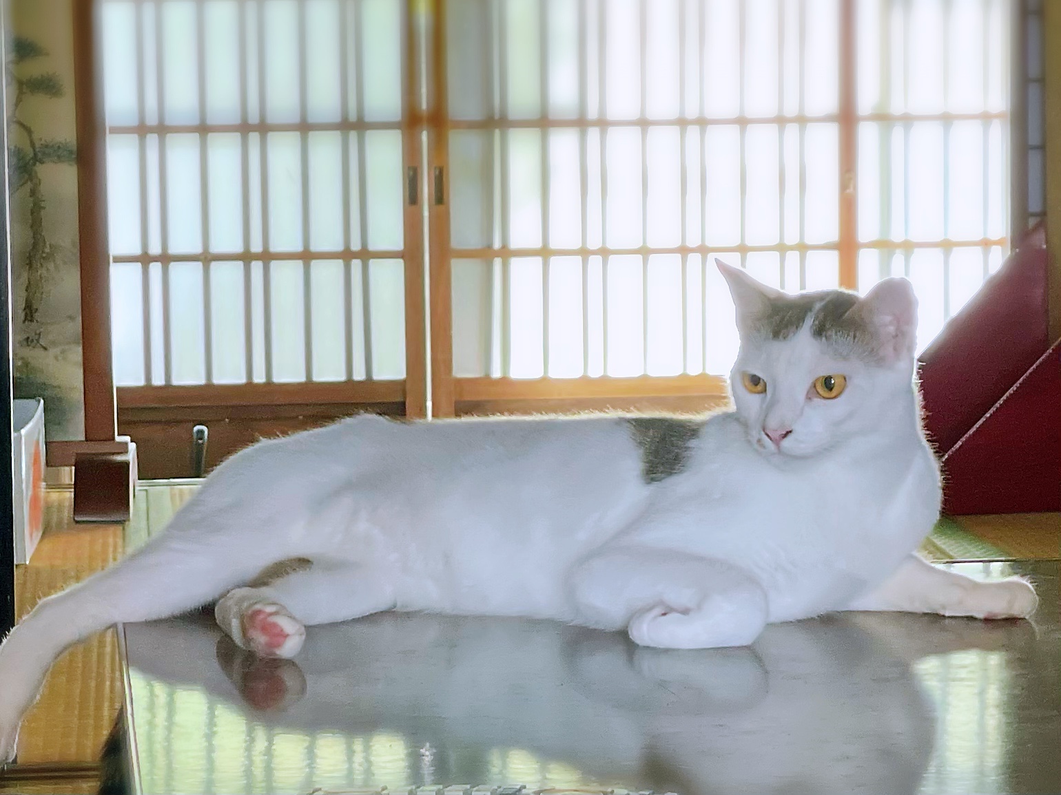 すらりと長身の白キジ君、初回訪問の際はちょっぴり緊張ぎみでしたが、お会いするたびに距離が縮まってきました。「おや、トイレそうじしているな」「よし!ぼくのゴハンをよういしているな」と、お世話するシッターをじっと見守ってくれています♪