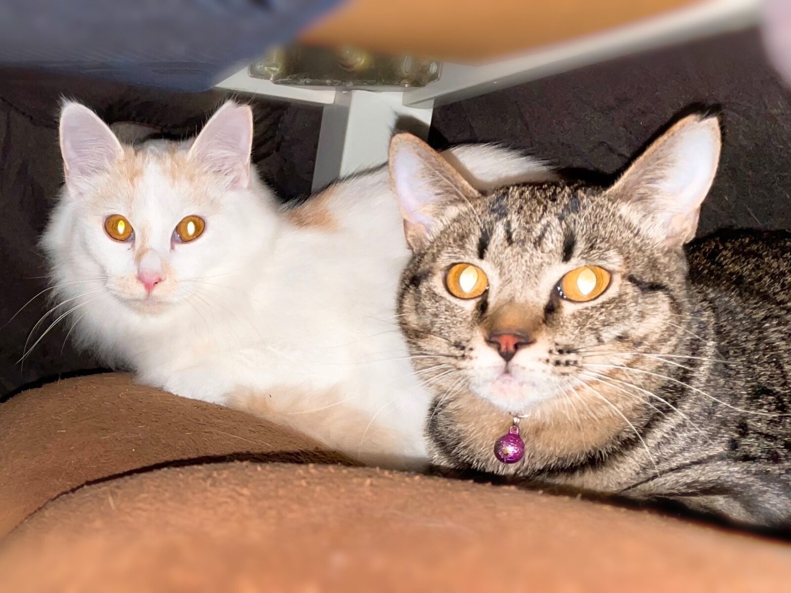 ほんのりミルクティー色の模様の白茶猫ちゃんと、サバトラの男の子。おふたりともまだ8ヶ月くらいの子猫ちゃんでした。