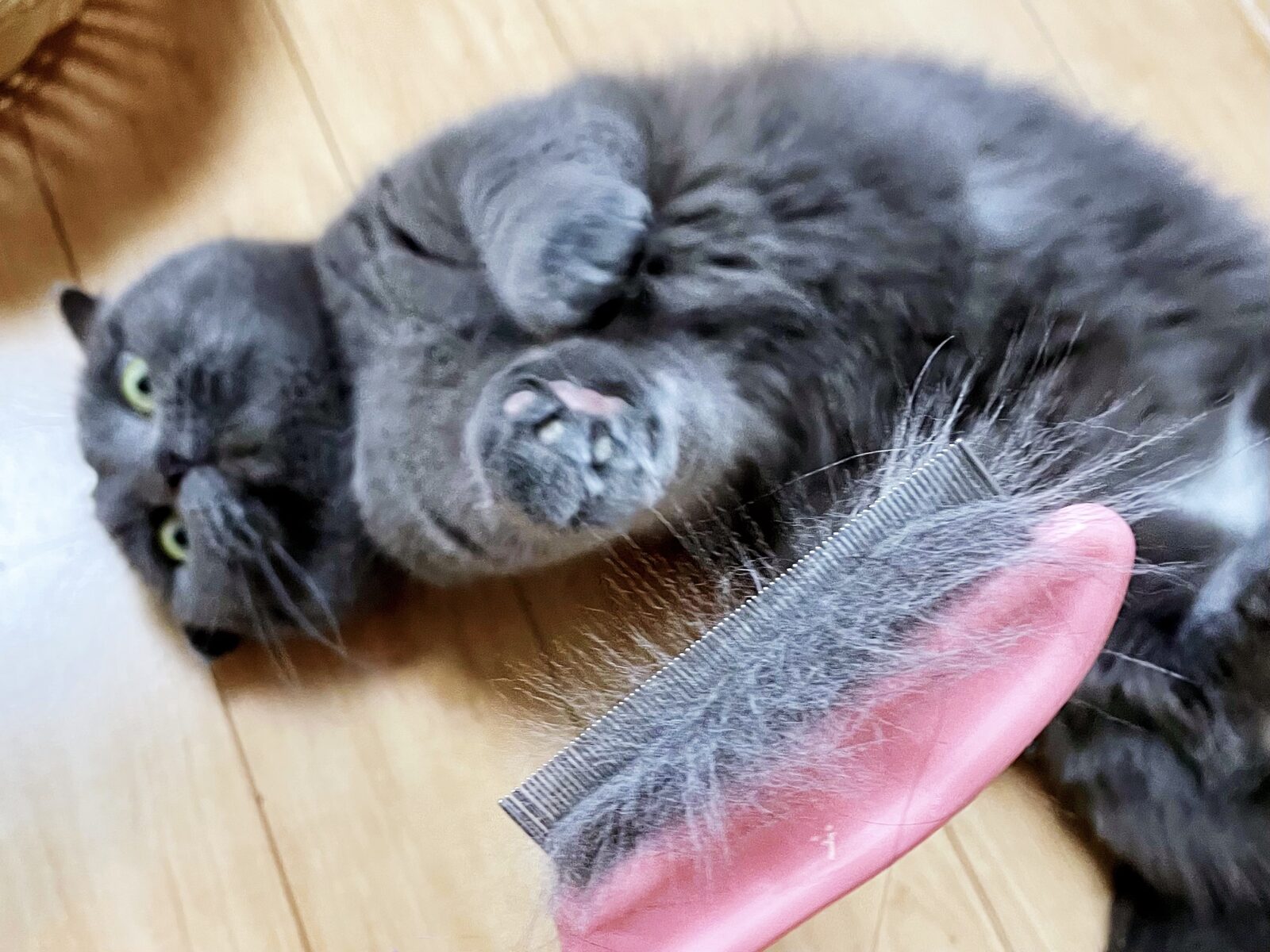 ブラッシングもさせて頂けましたよ。しっぽぴーん♪ごろ〜ん♪で気持ちよさそうです。きれいな毛並みがさらにフワッとして可愛らしいですね。