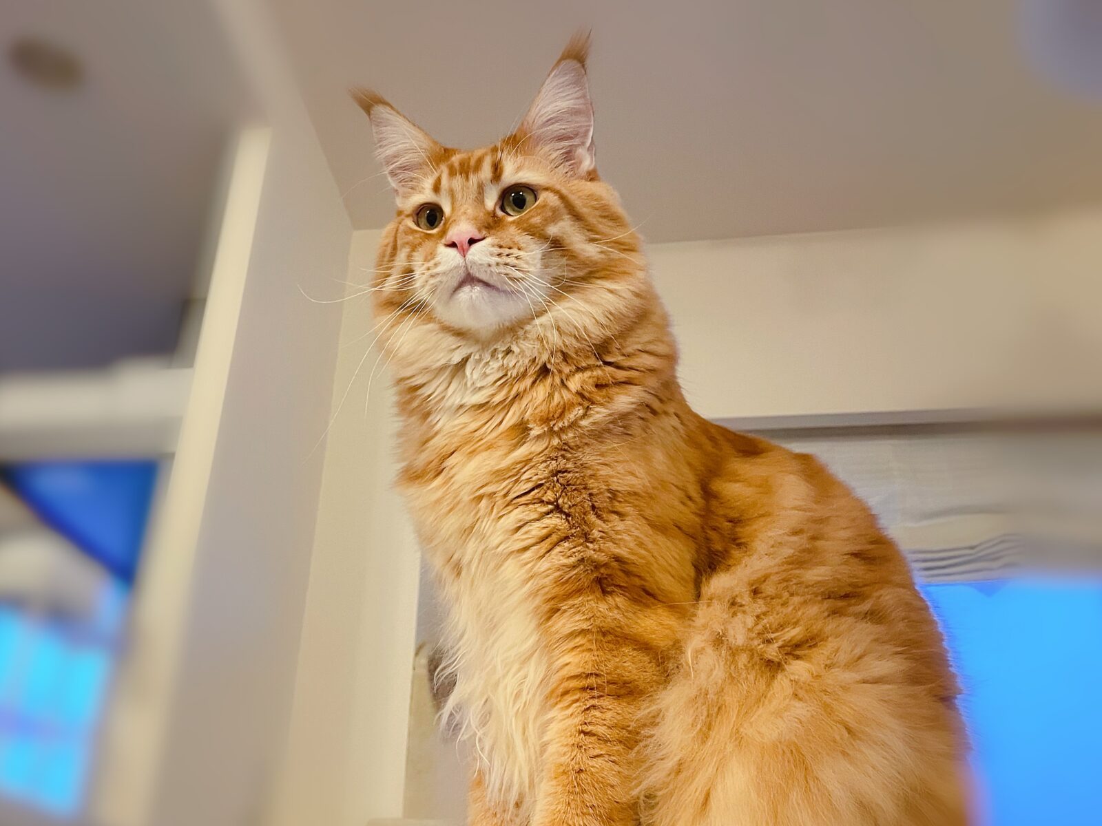 ブルータビーのメインクーン君♪ 立派なリンクスティップ(耳先の毛)ですね。王者の貫禄に見惚れてしまいます!