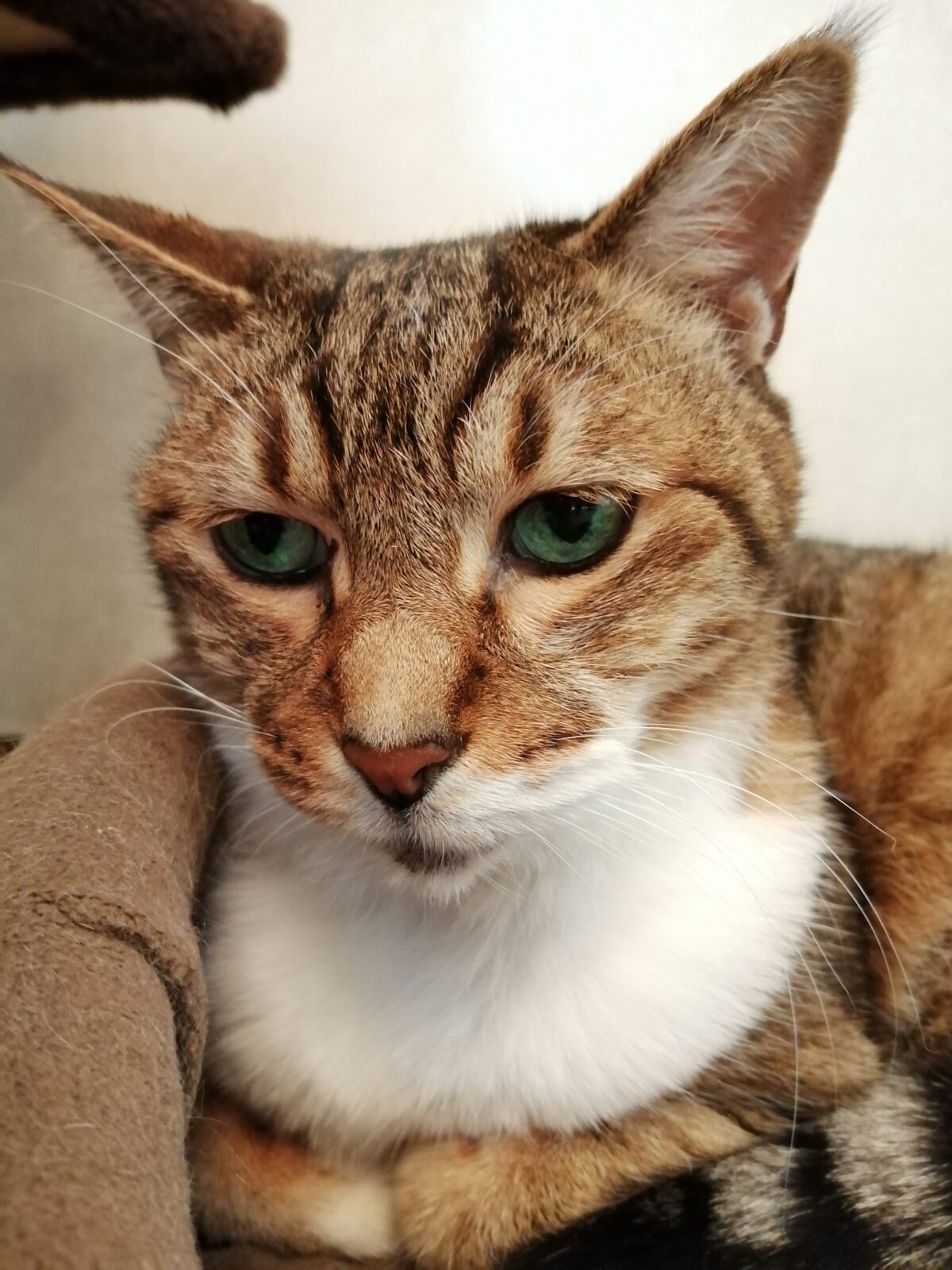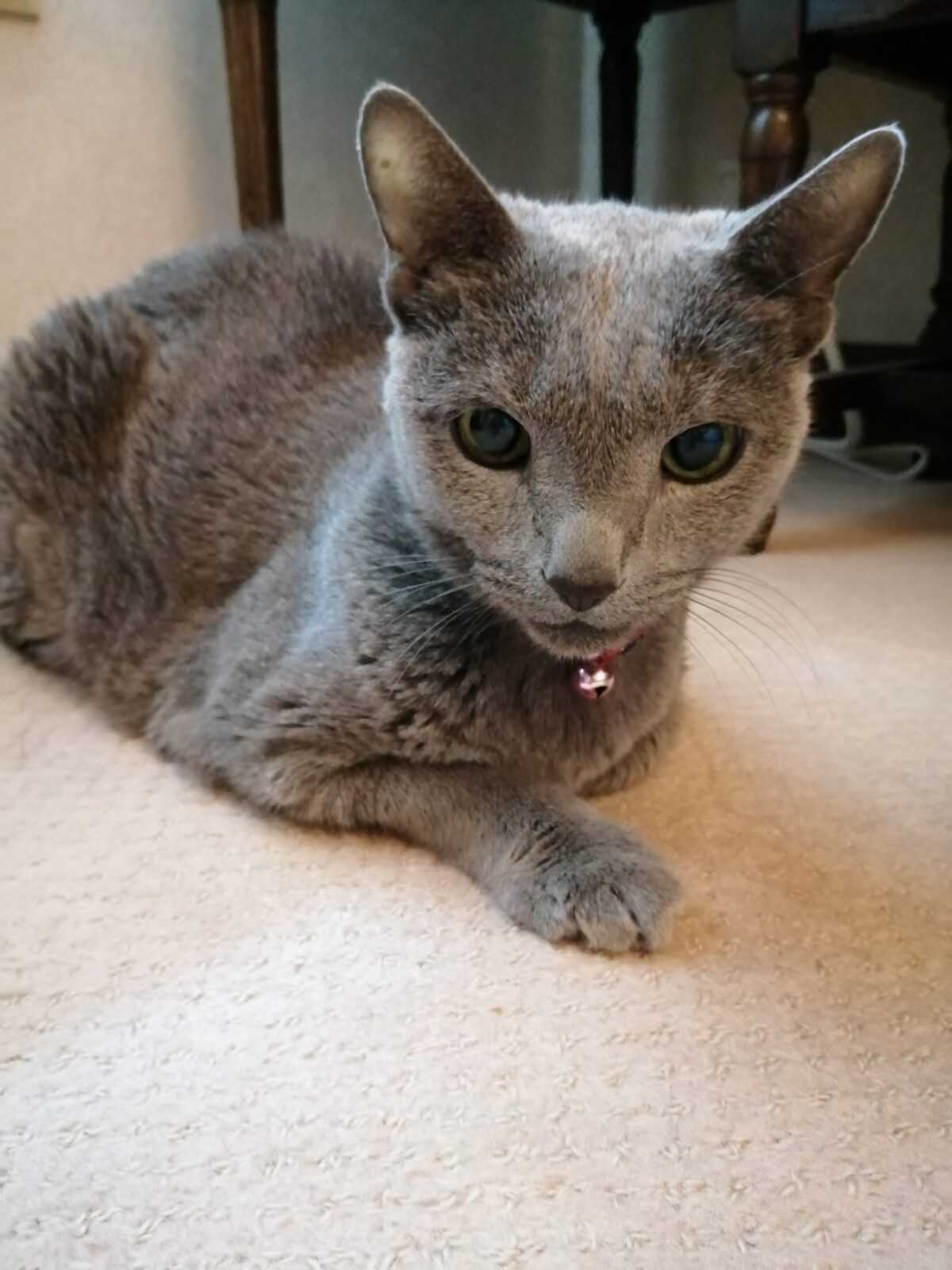 高齢ニャンちゃんのロシアンブルーちゃん達は毛艶も良く大人しくジーっとこちらを見ていました。