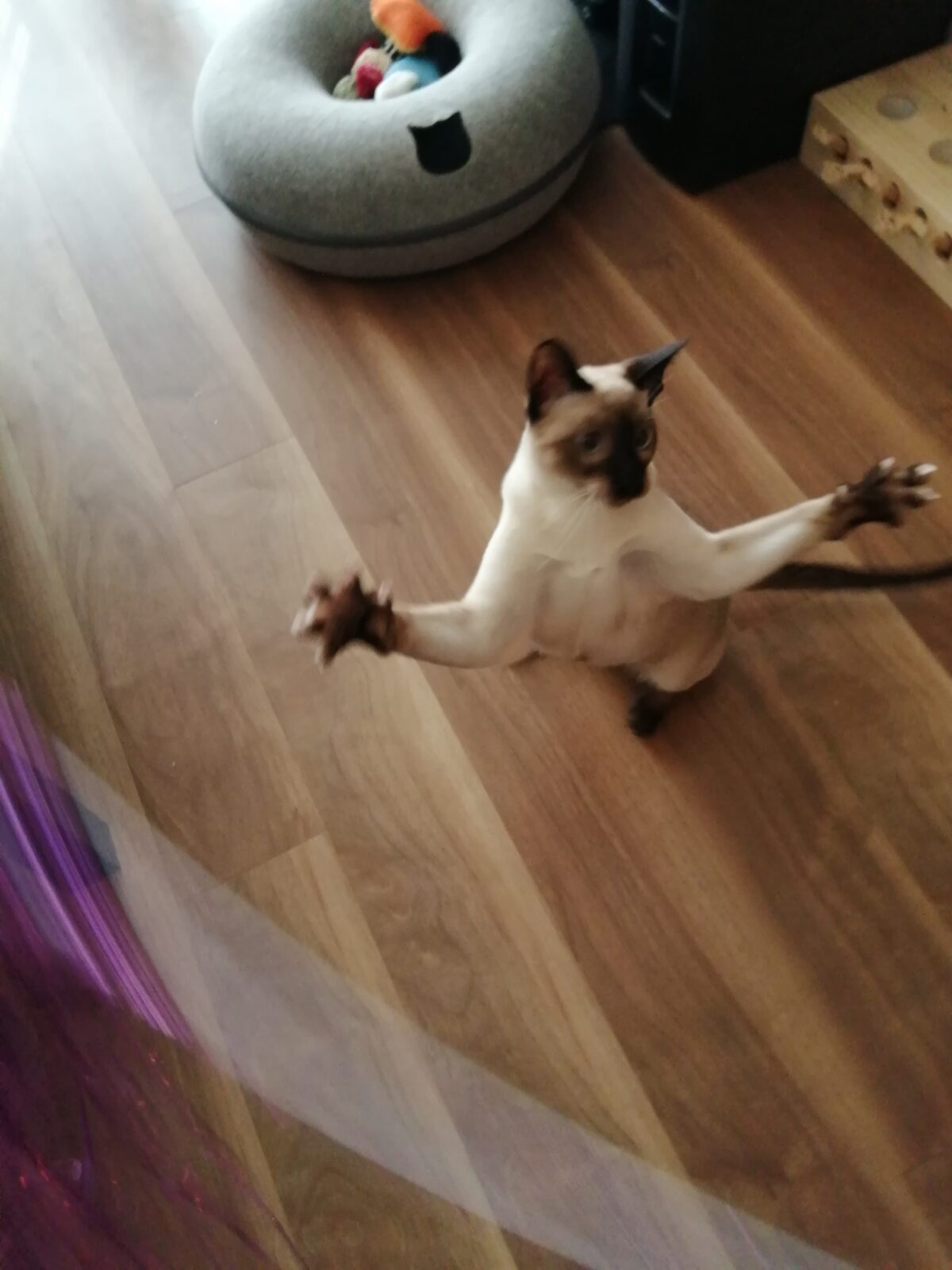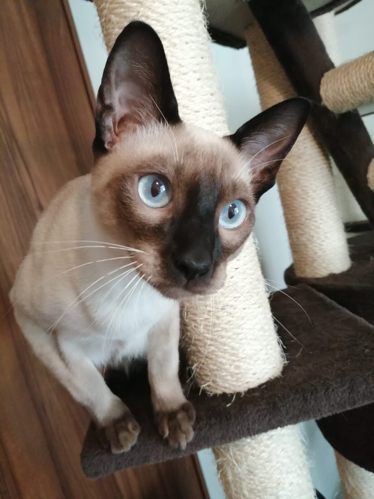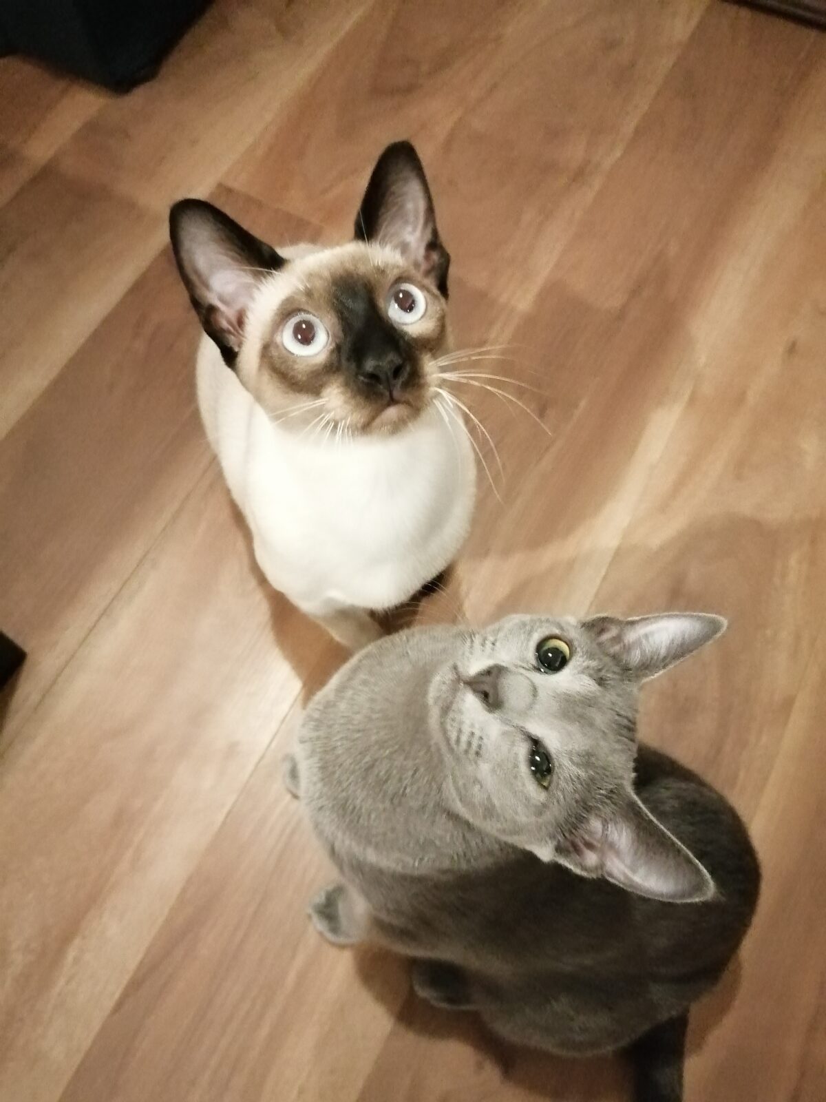 お姉ちゃんのロシアンブルーちゃんより弟のシャムくんの方がズッシリと大きくなった感じです🐱