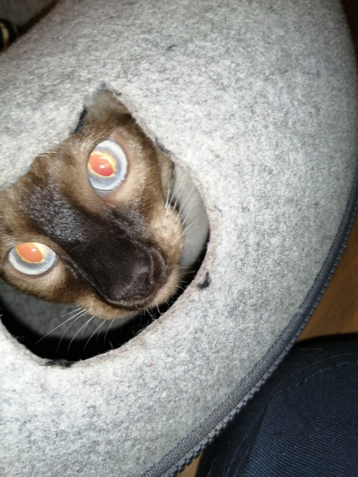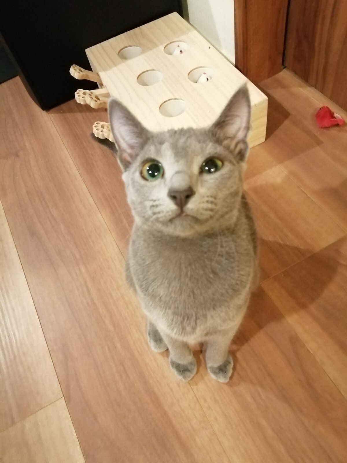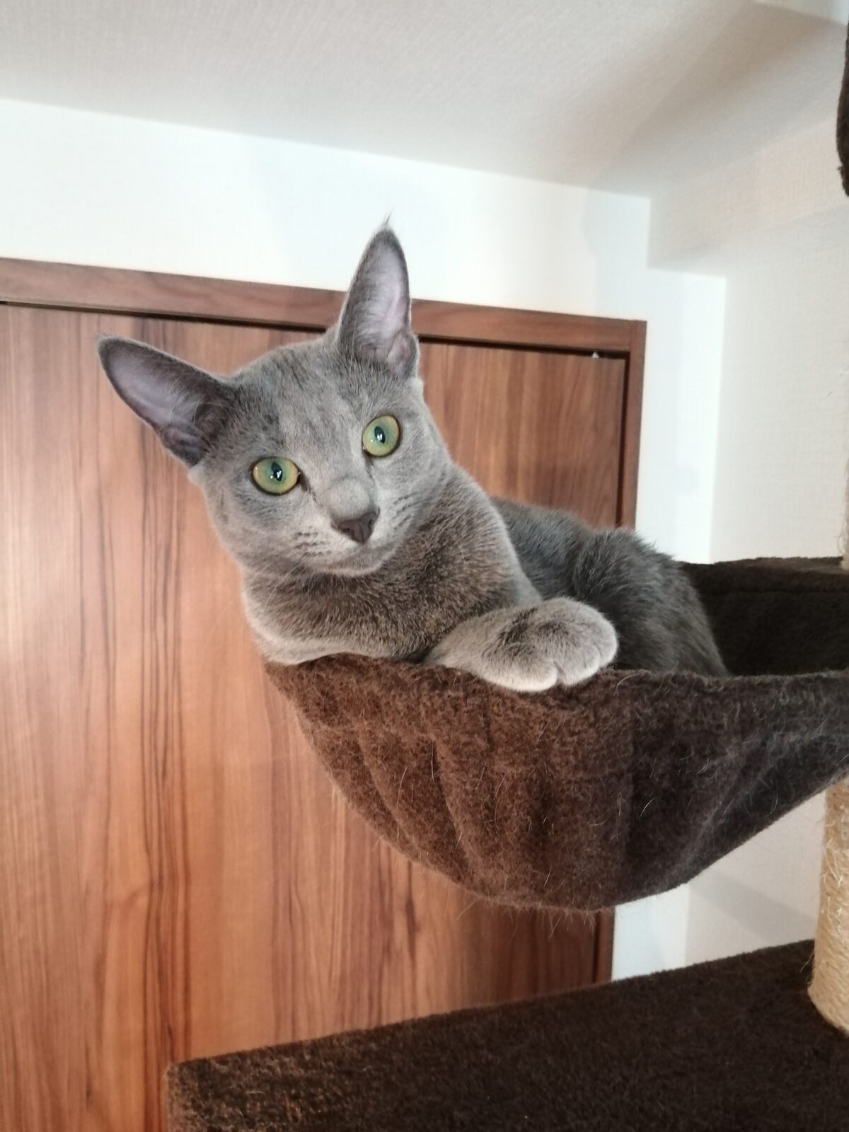 お姉ちゃんのロシアンブルーちゃんより弟のシャムくんの方がズッシリと大きくなった感じです🐱
