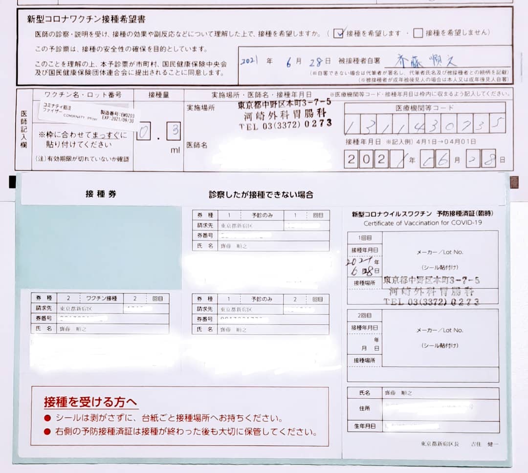 第2回目の新型コロナウイルスワクチン接種は2021年7月19日㈪に行います。