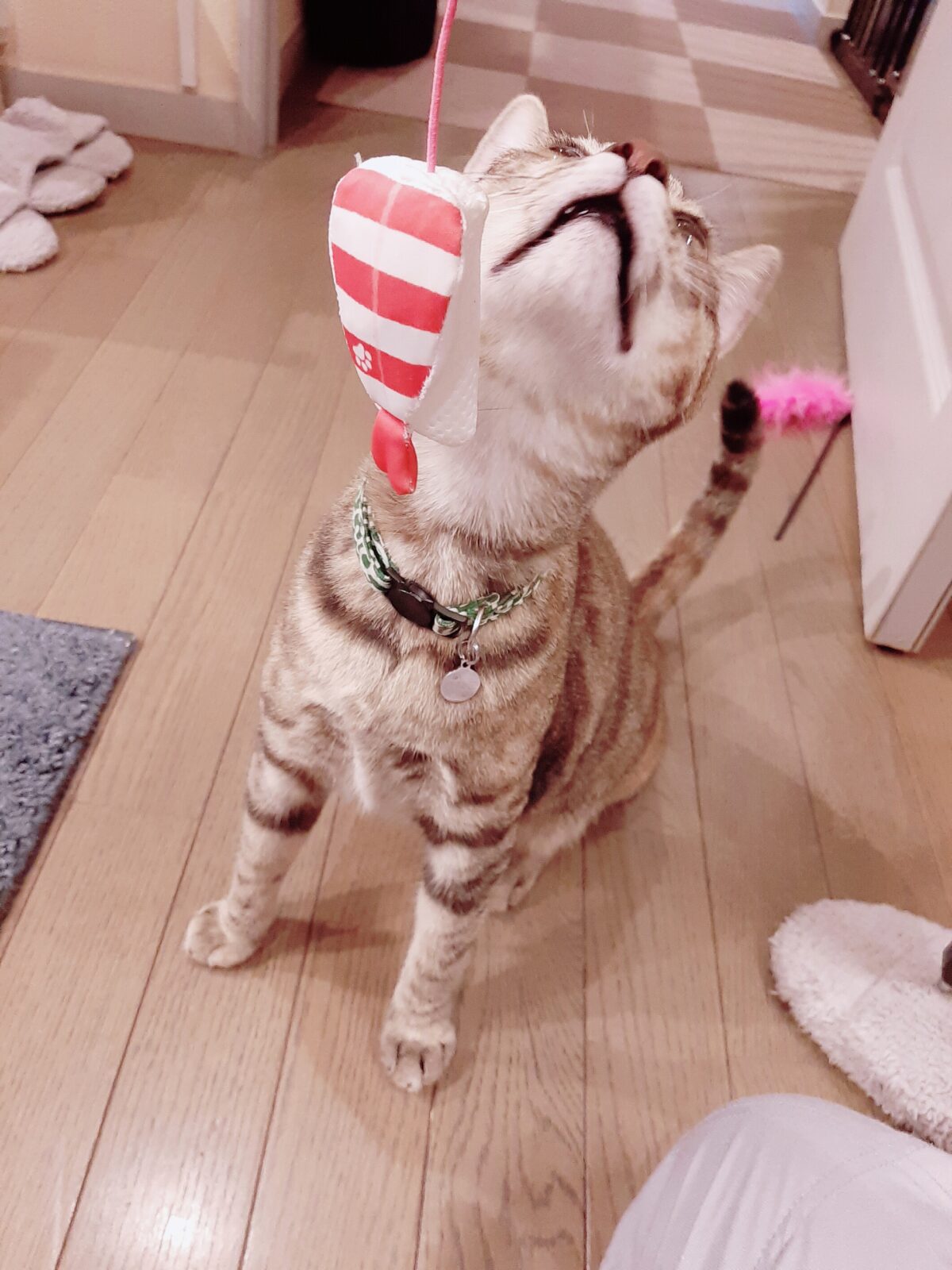 もう一匹のニャンちゃんにネズミ人形を投げると驚いていました(笑)😸