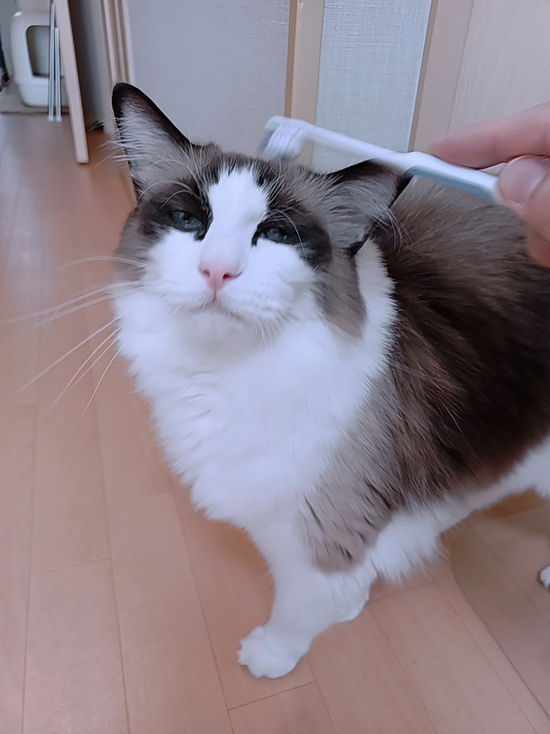 新宿区 お得意様 歯ブラシ大好きラグドールくん お世話報告