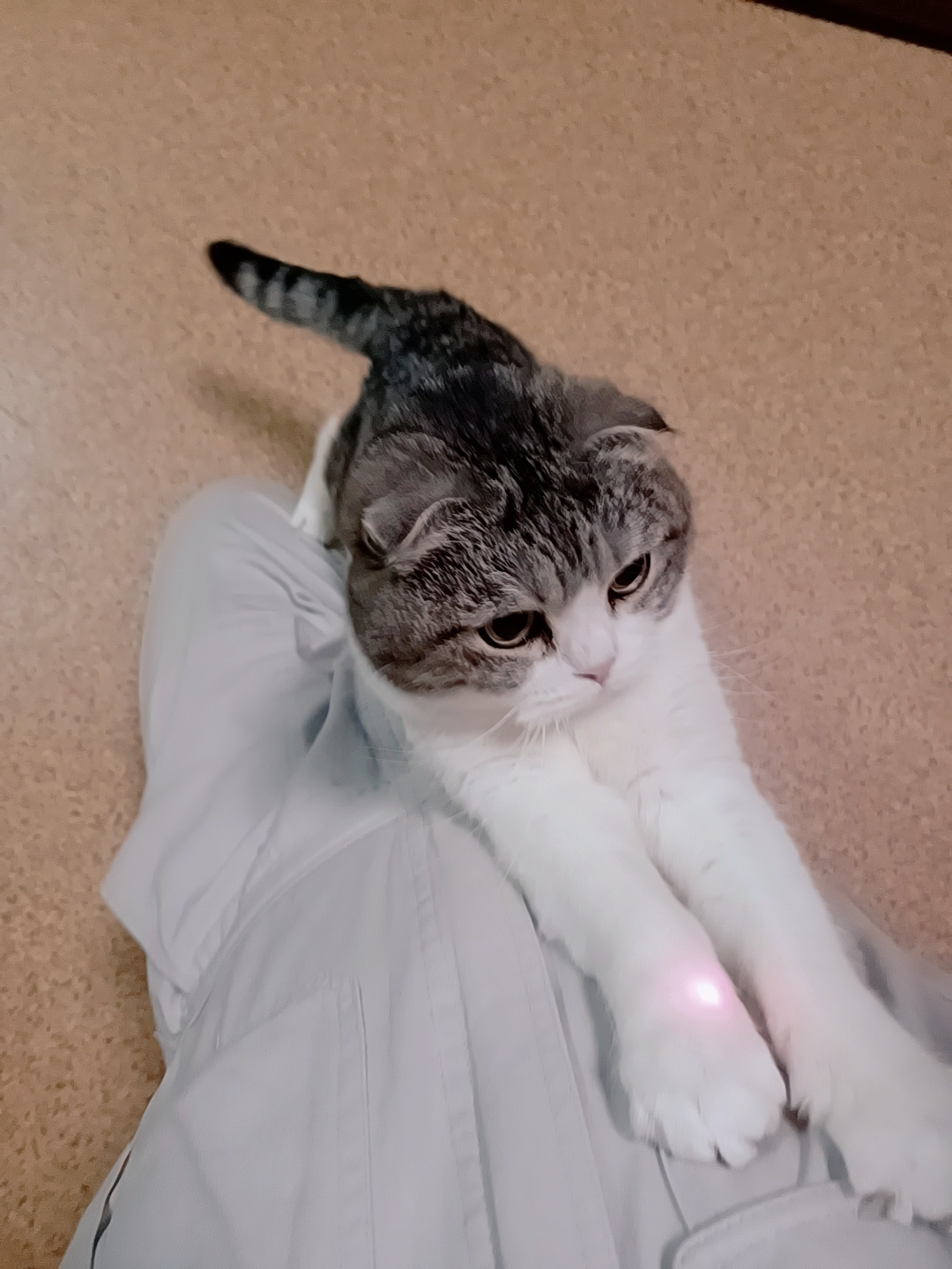 一番お気に入りのニャンコレーザーで遊んでも遊んでも飽きない元気一杯のスコティッシュフォールドちゃん😻