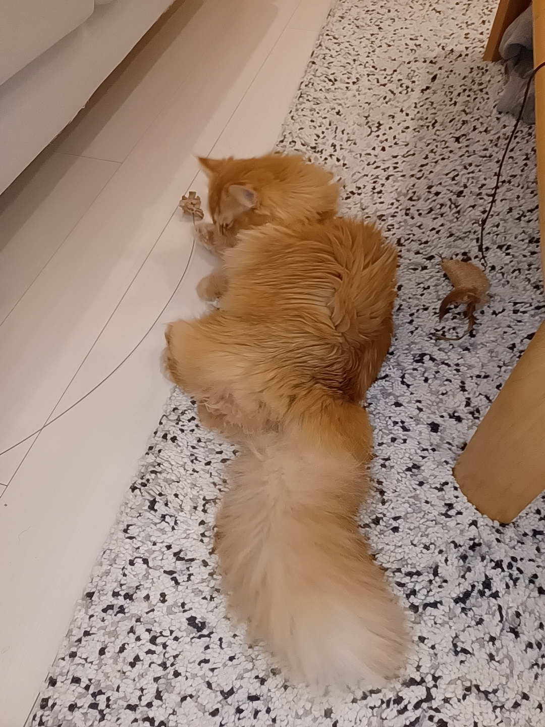 満腹で寝ちゃうかな〜と思いきや、おもちゃで遊んで甘噛タッチも愛嬌です😻