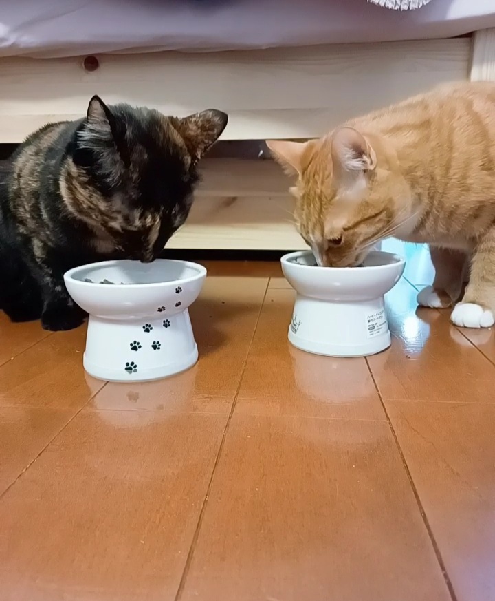 細目になって夢中に食べる姿は何とも言えないですね😽
