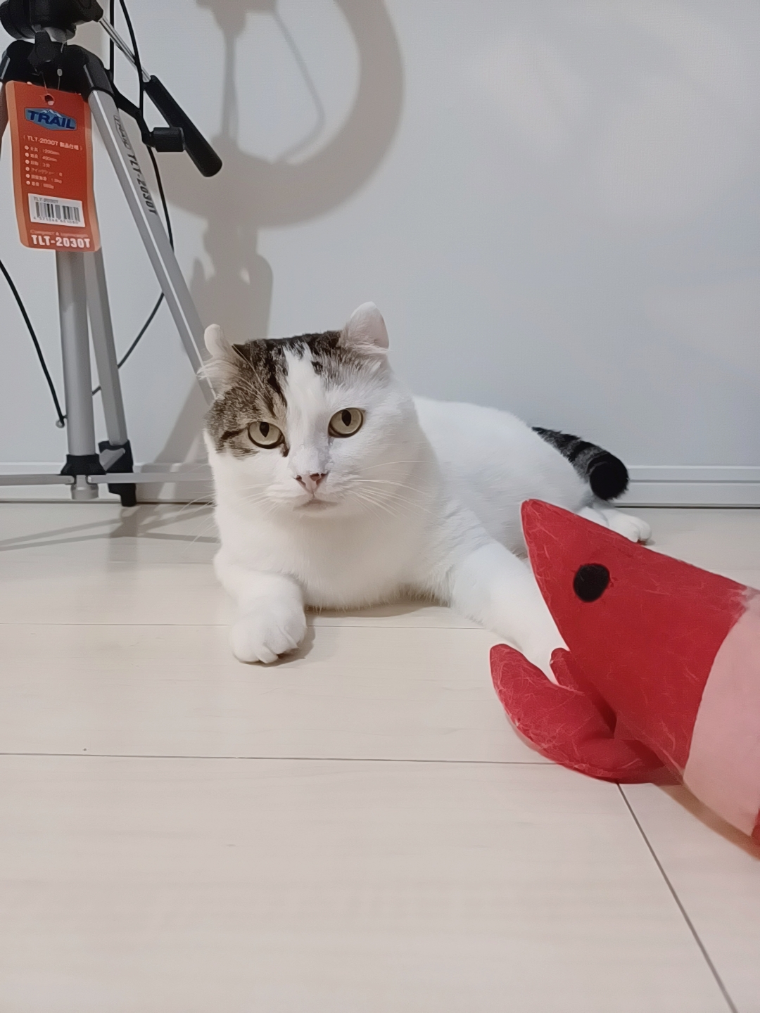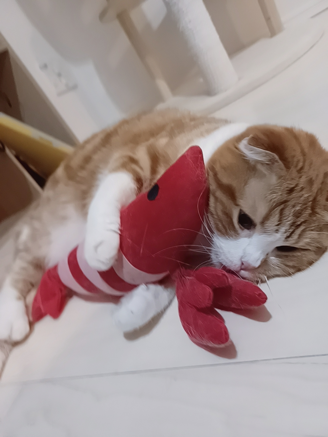 どちらもエビ型のおもちゃが大好きで『猫キック』の連発でした〜(笑)