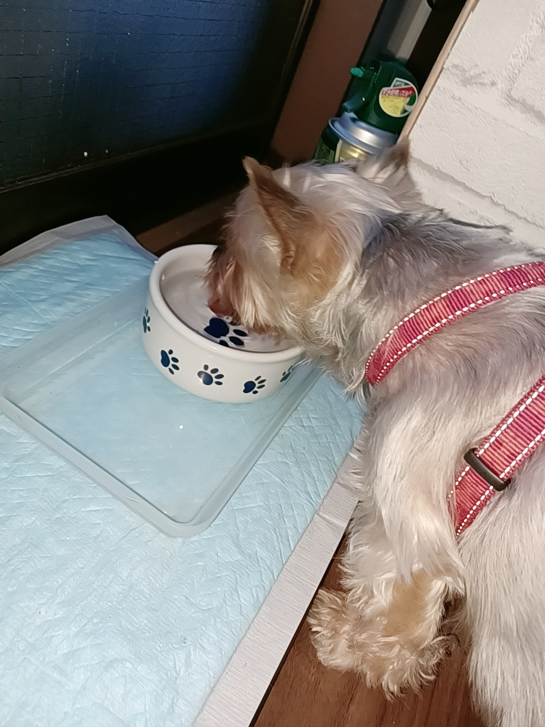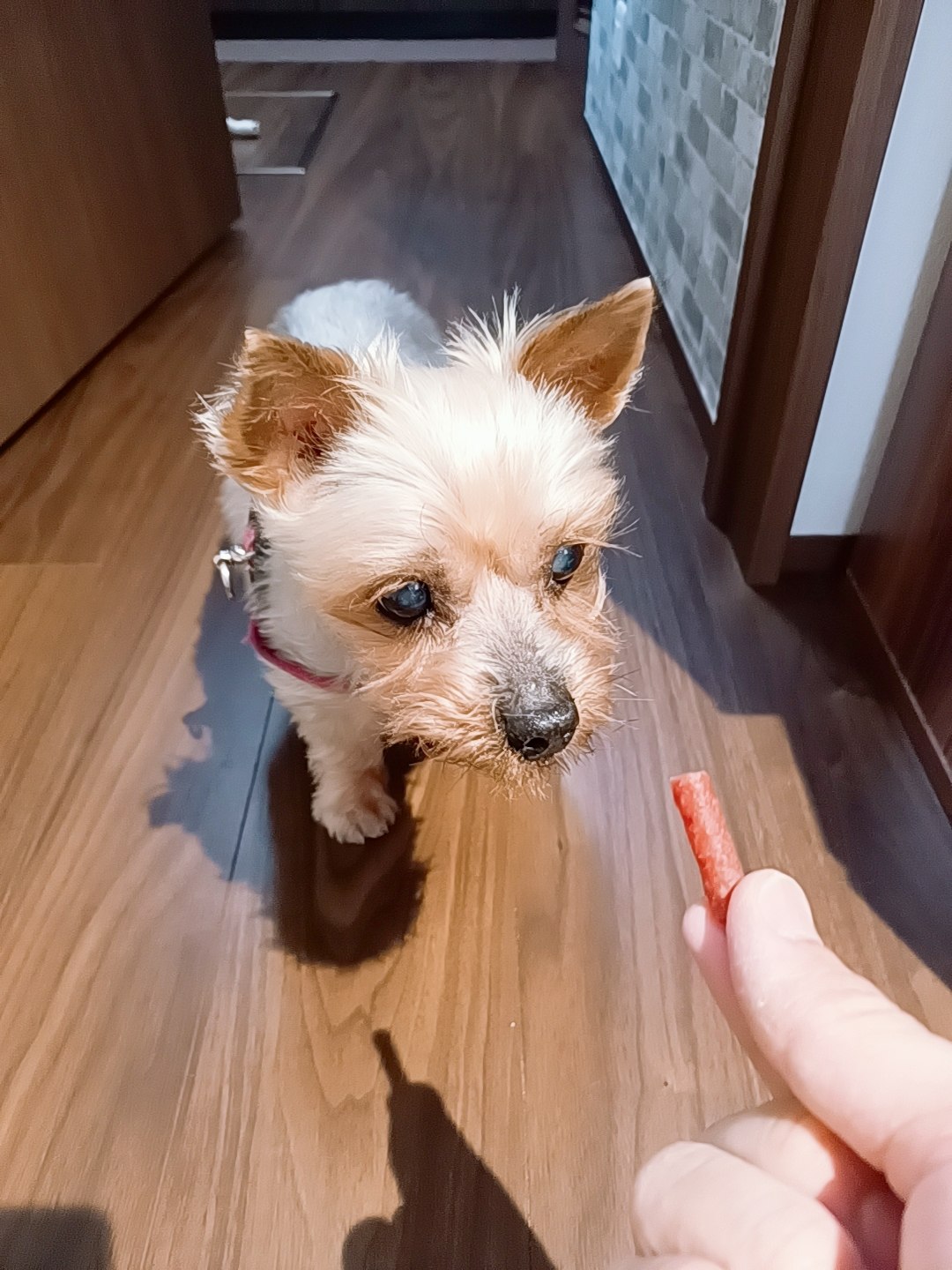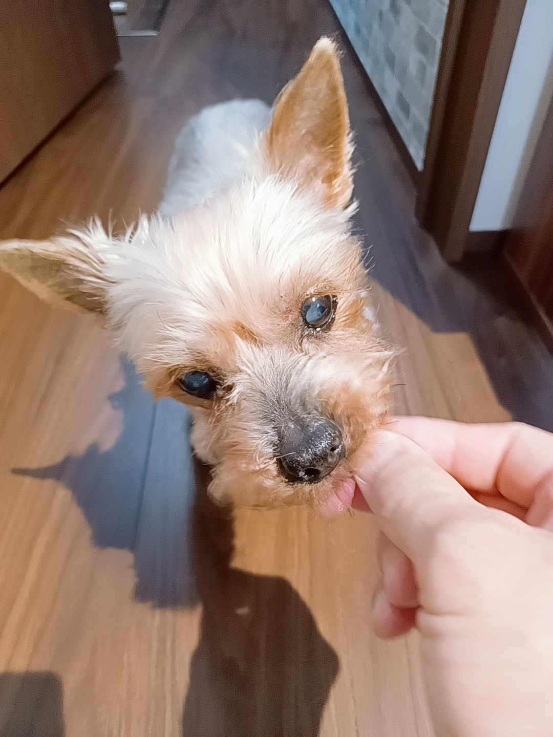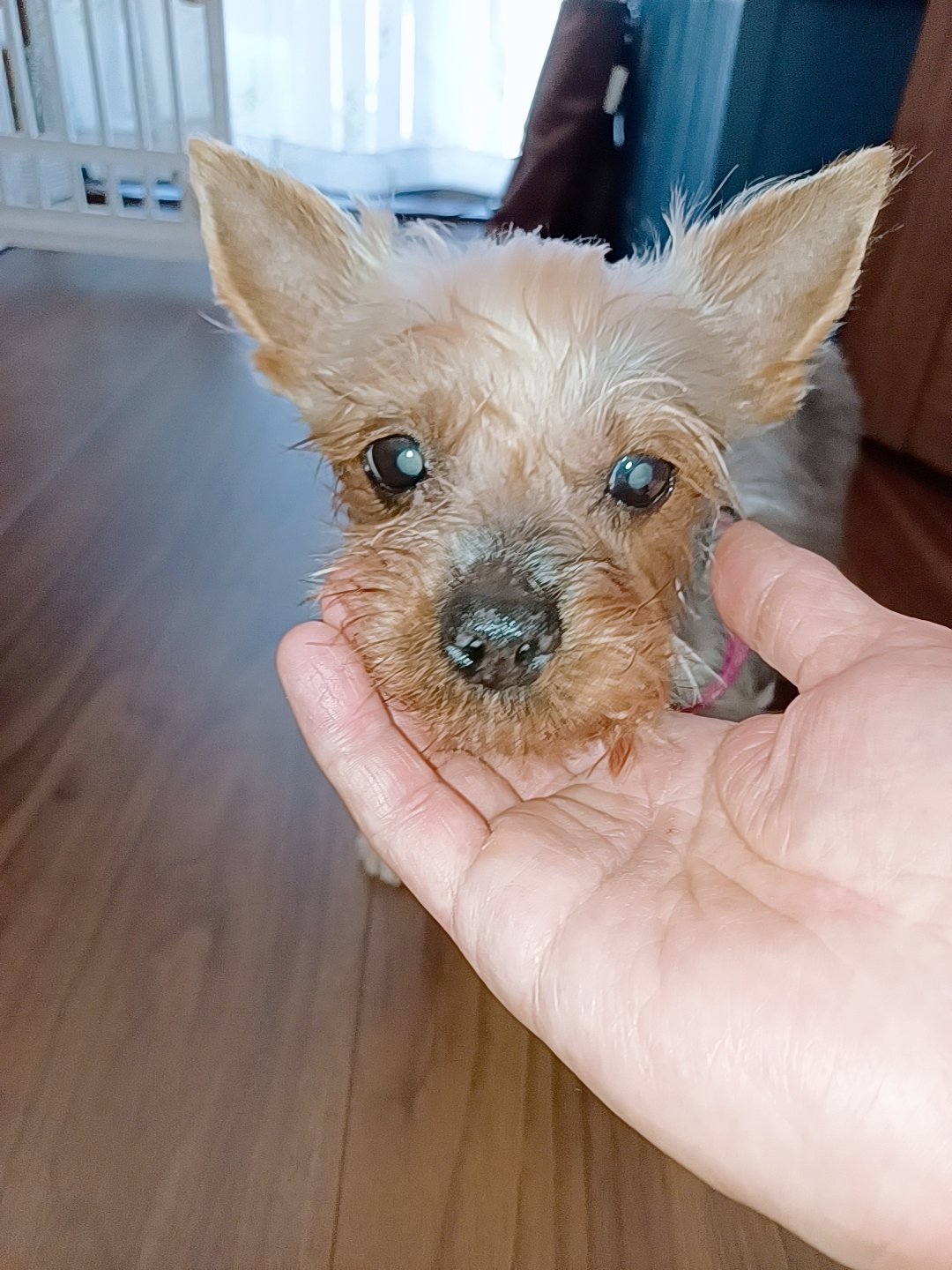 帰宅後に美味しいおやつを食べて満足なヨーキーちゃんでした〜🐾