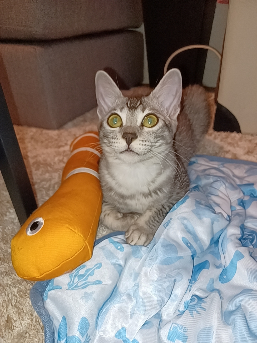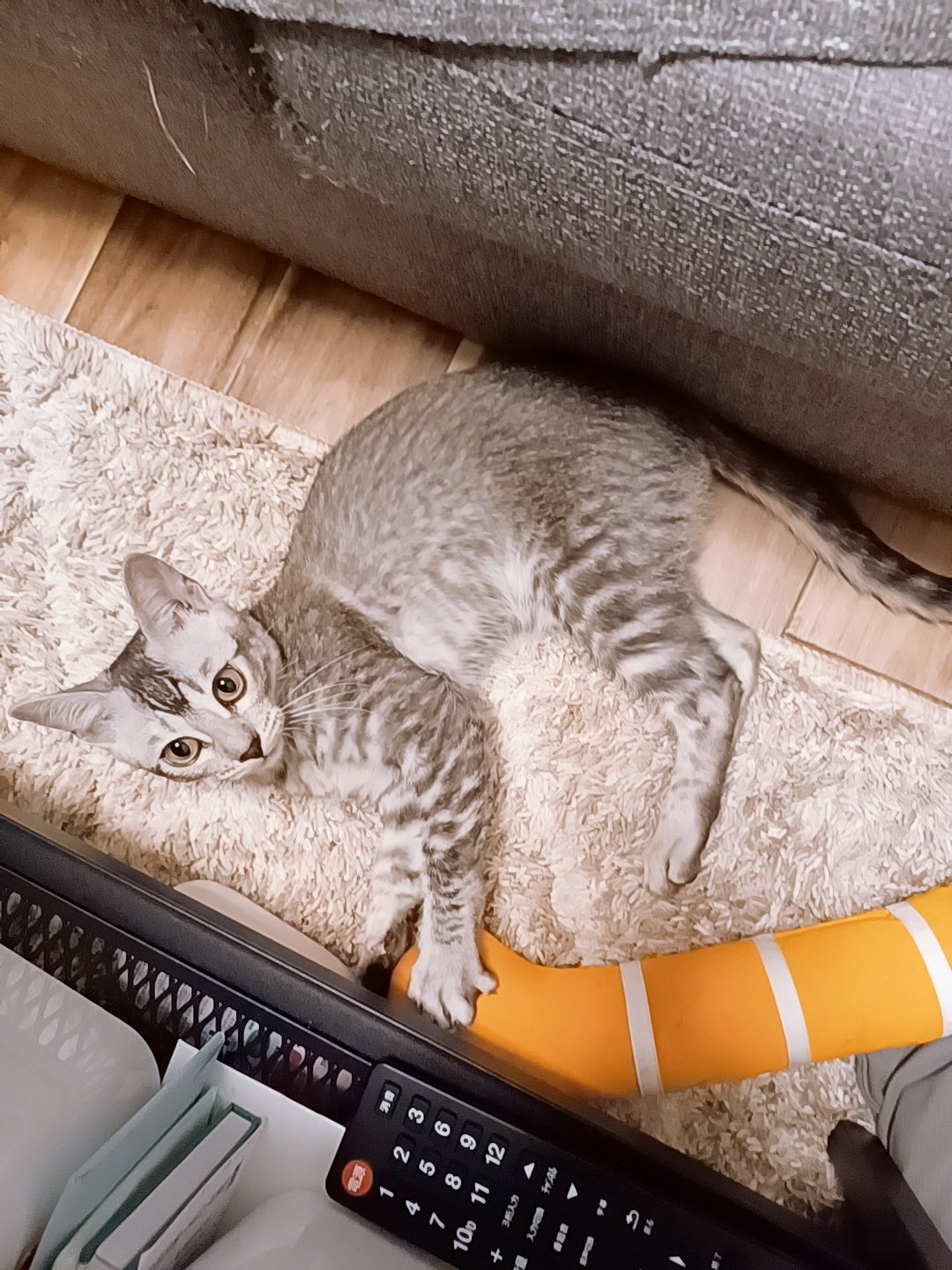 人見知りで近寄ると隠れていましたが日に日に仲良くなれてお鼻タッチ〜おもちゃ遊びもできるようになりました〜😽