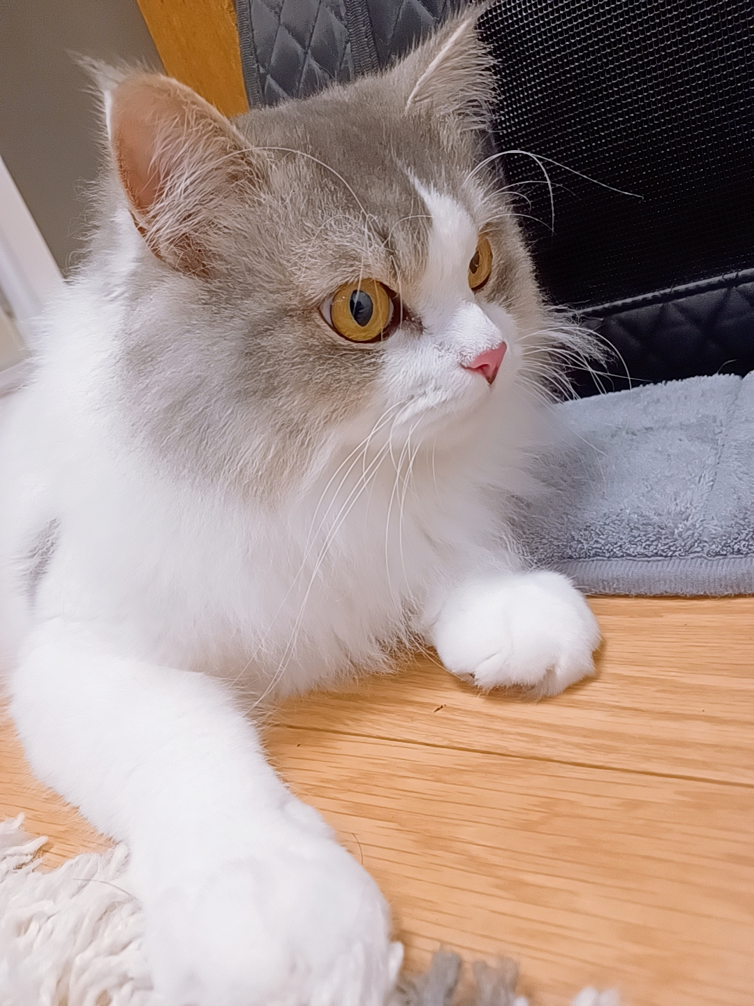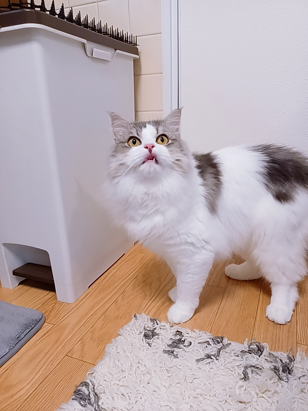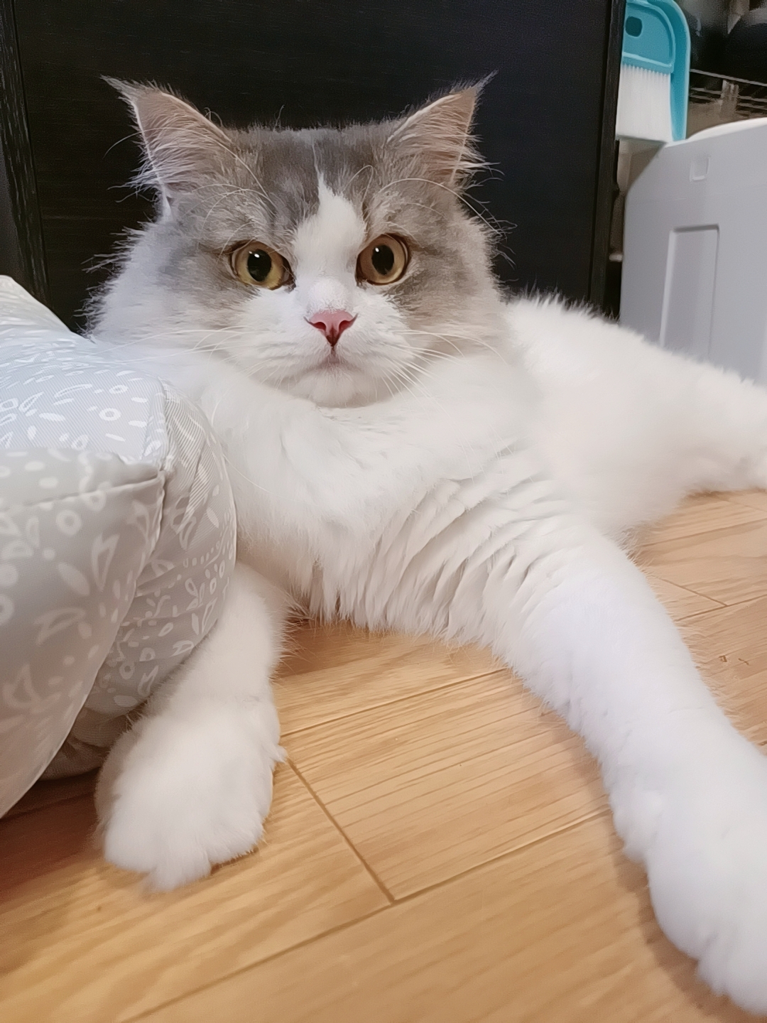 ちゅーるは絶対にあげないよっ!!と言わんばかりに抱きかかえちゃう可愛いい〜もふもふぅ〜ラガマフィンくんです😻