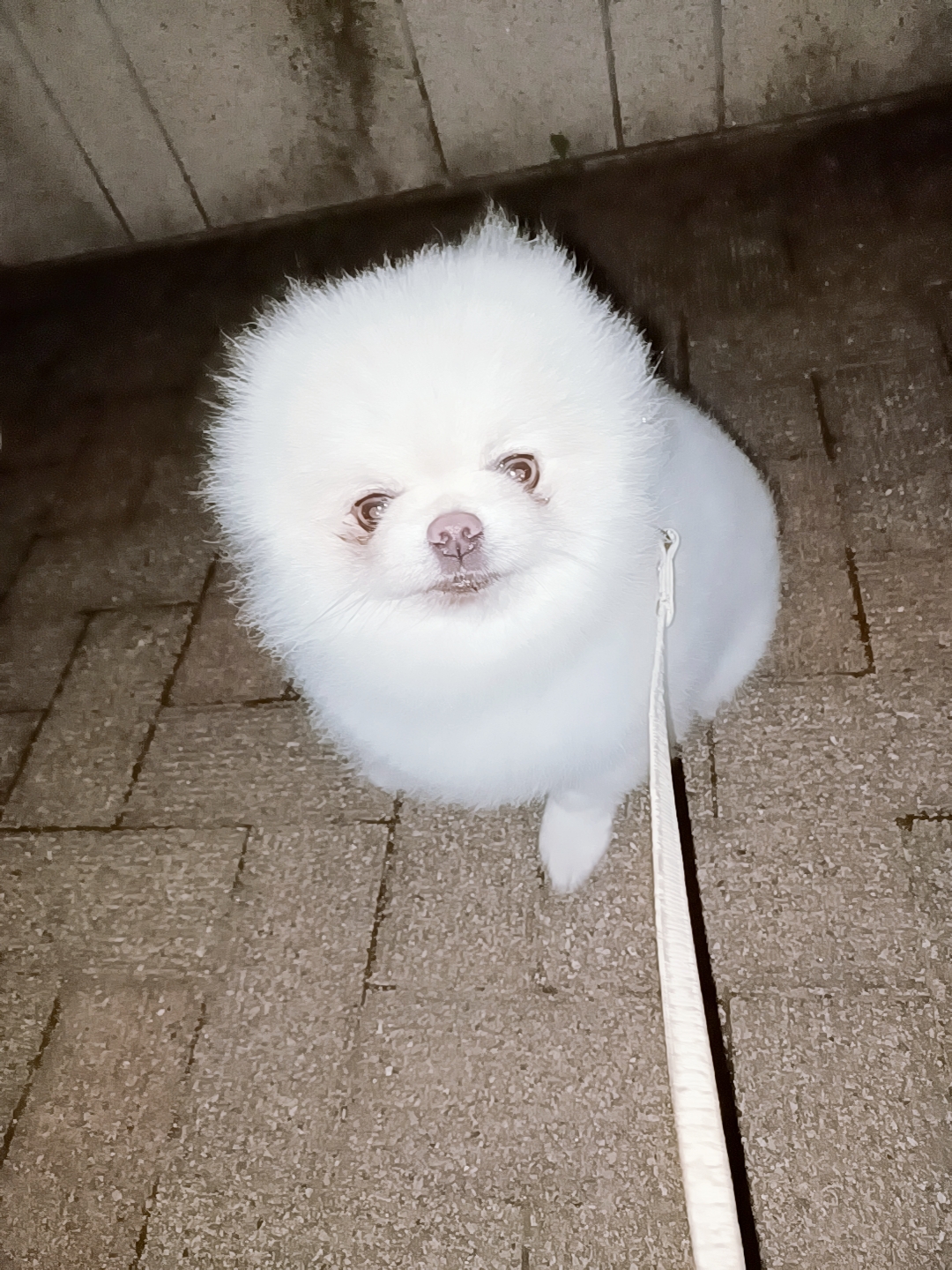 新宿区 お得意様 もこもこもふもふ ホワイトポメラニアンくん お世話レポート