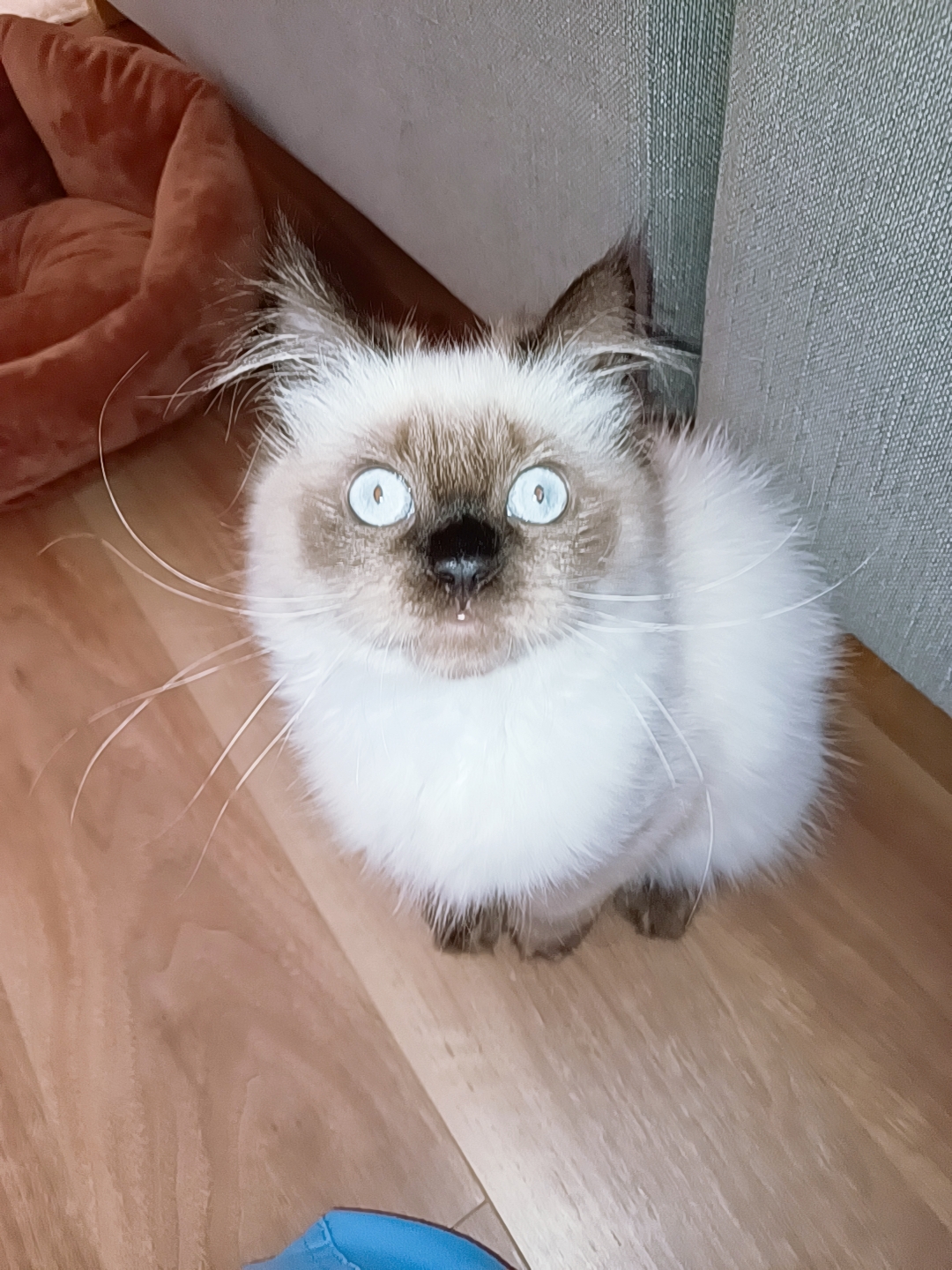 お邪魔しまーすとお部屋に入ると…入口でお出迎えをしてくれました〜😽