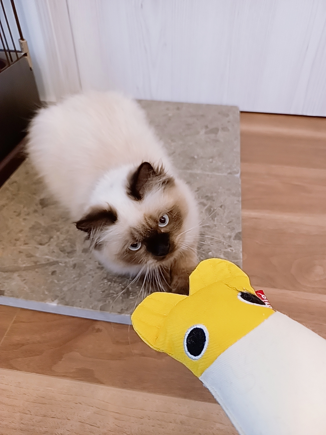 おもちゃ遊びで人形を渡すと百発百中キャッチしてくれます。お見事!!ほんと凄いな〜!!🙀