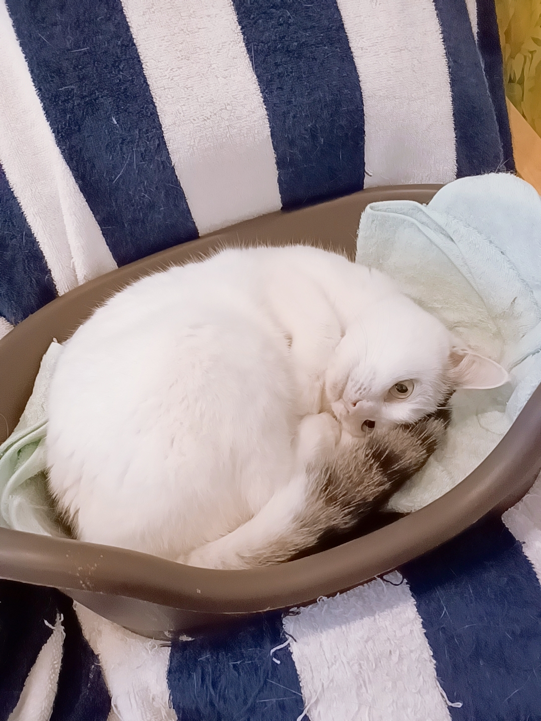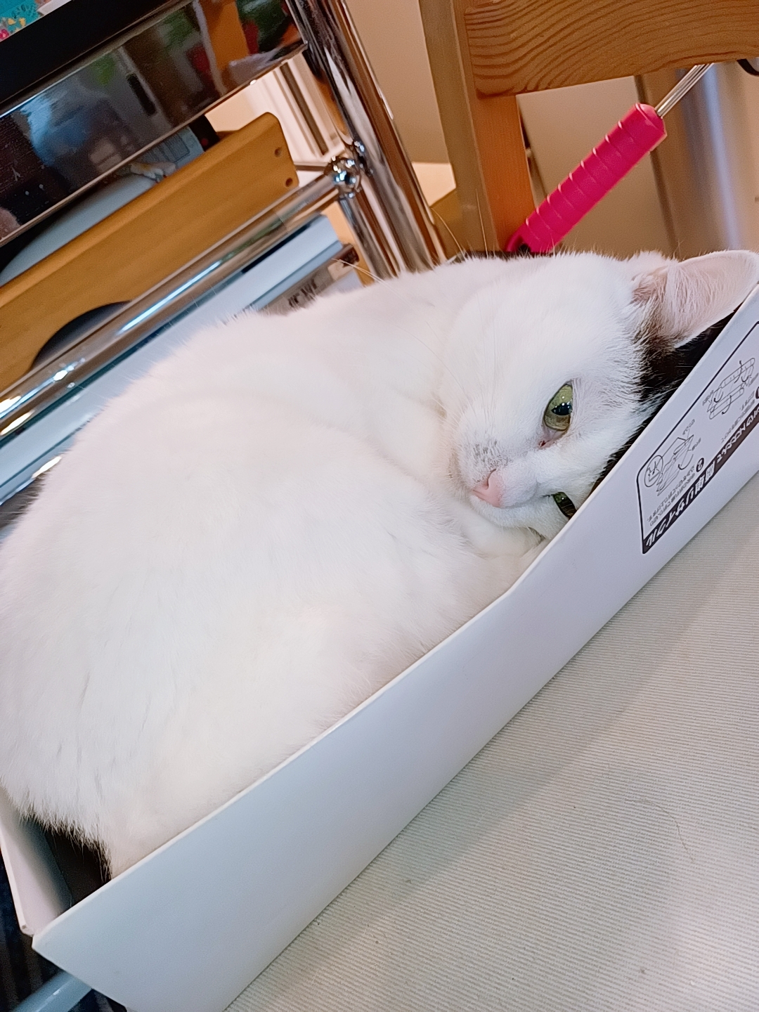 小さな箱の中にすっぽり入りおやすみ〜可愛いですね😻