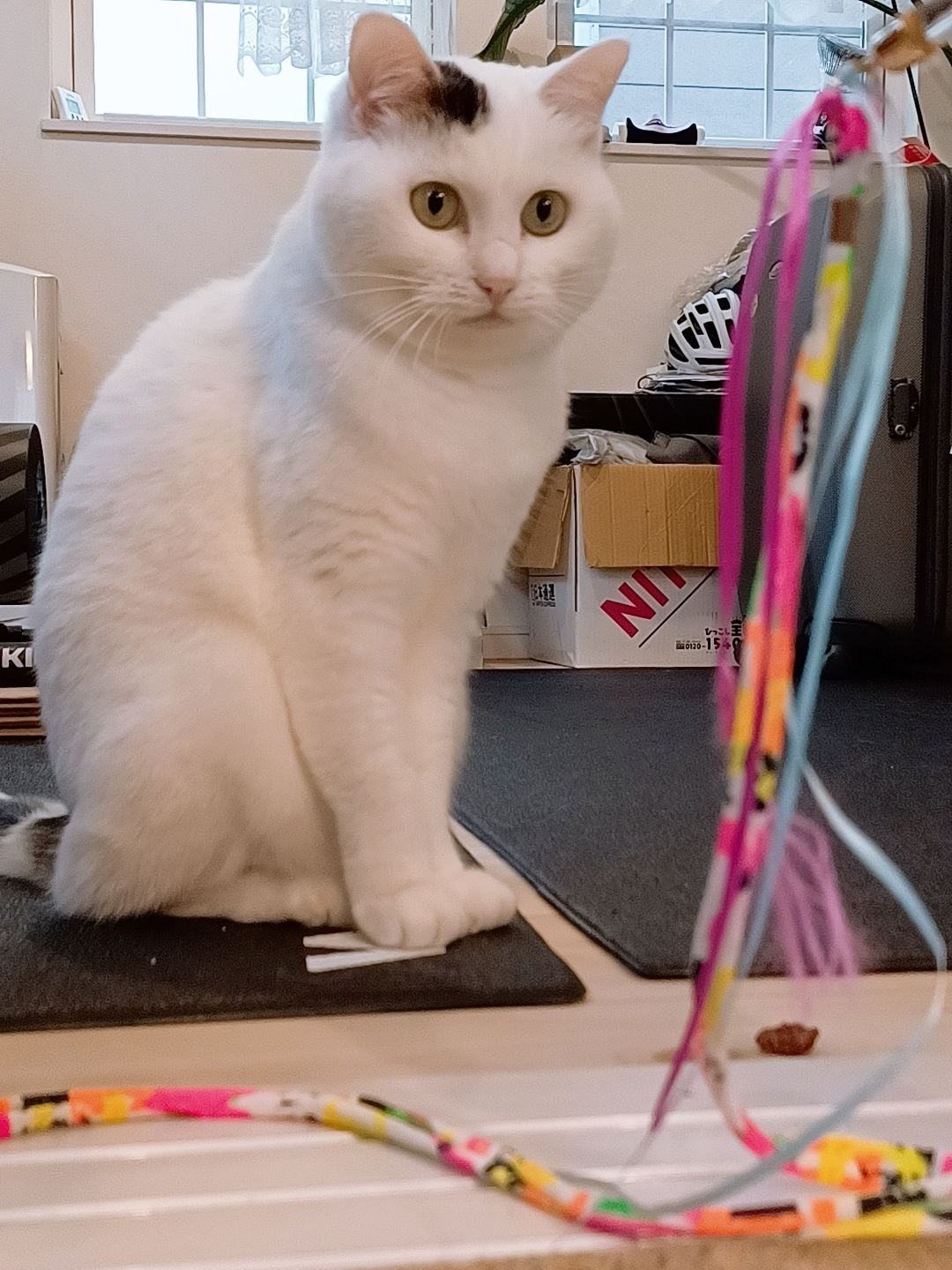 くりくりお目目で、物の動きを瞬時に捉え猫パンチの連打を見せてくれました〜🐾(笑)