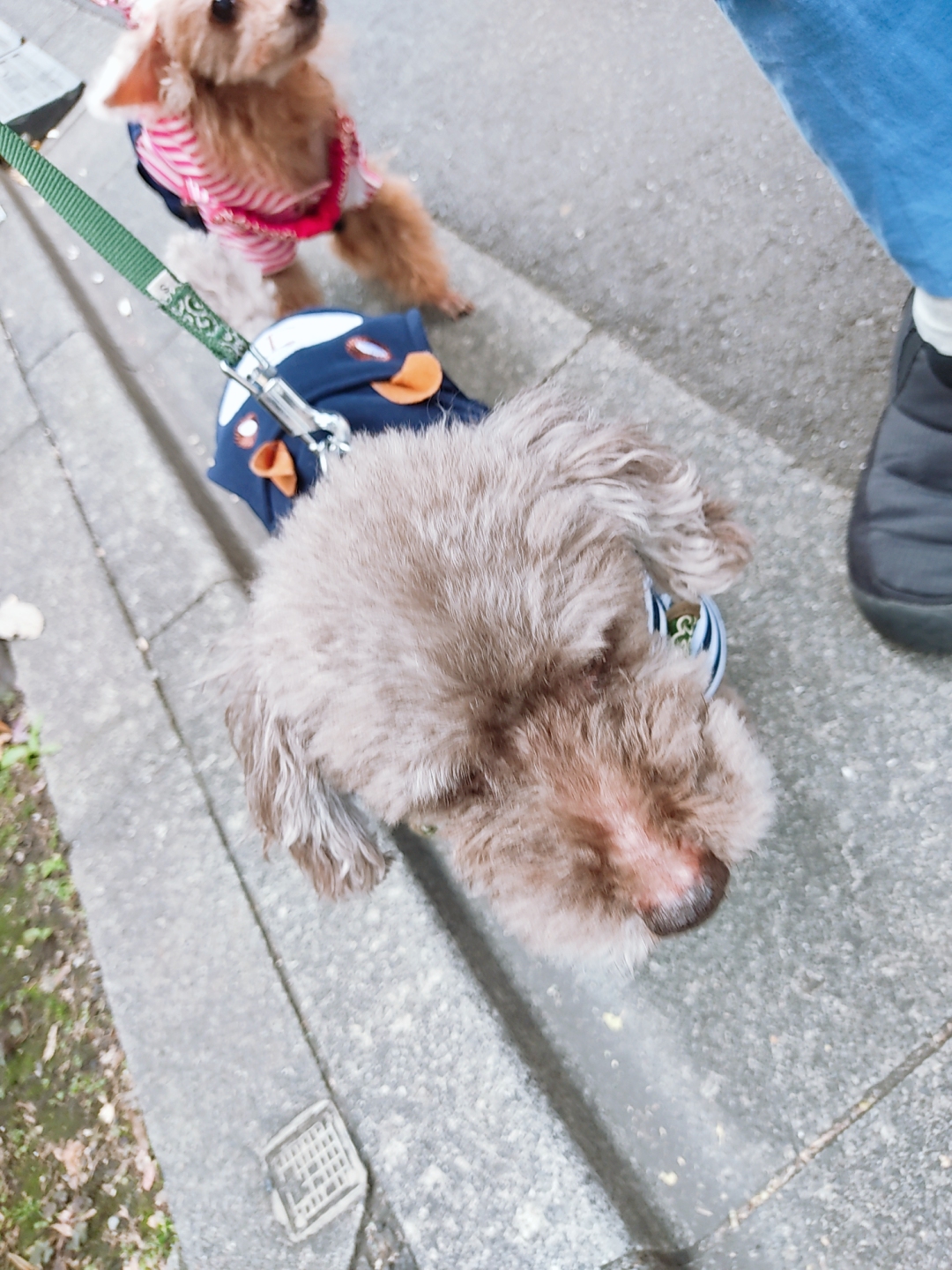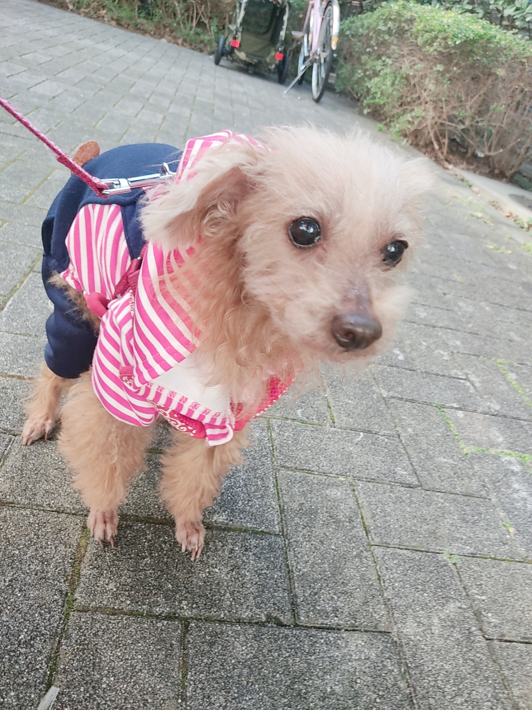 お散歩はレッドカラーのトイプーくんどうしたのかな〜?